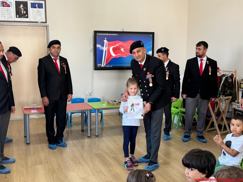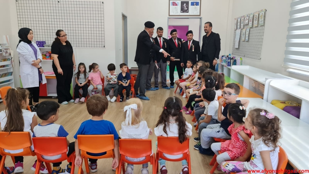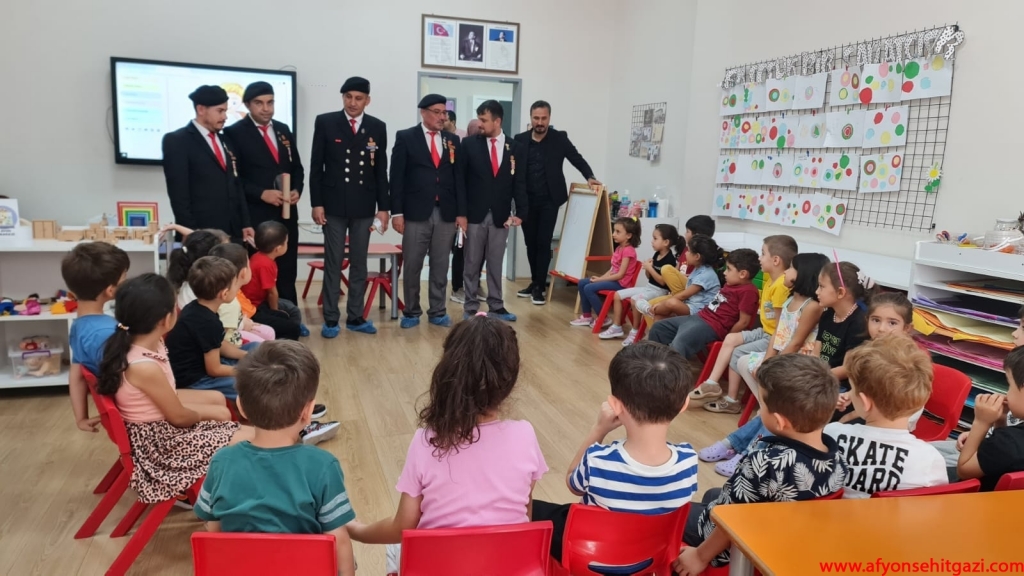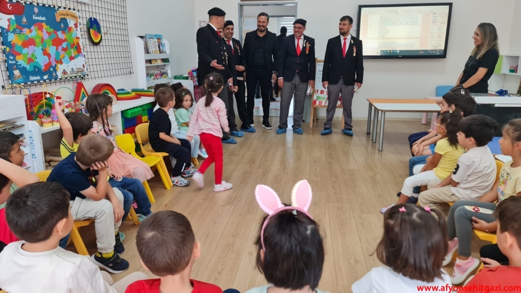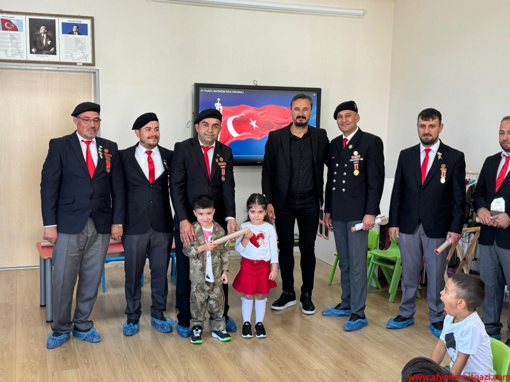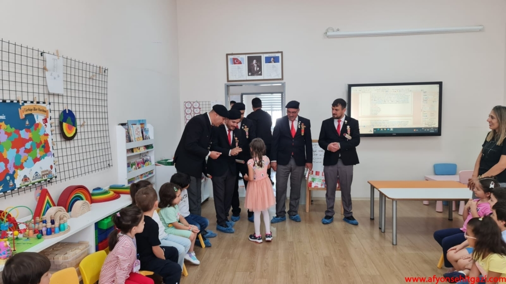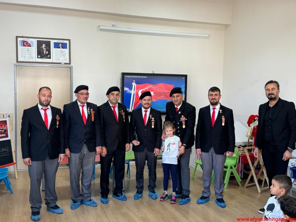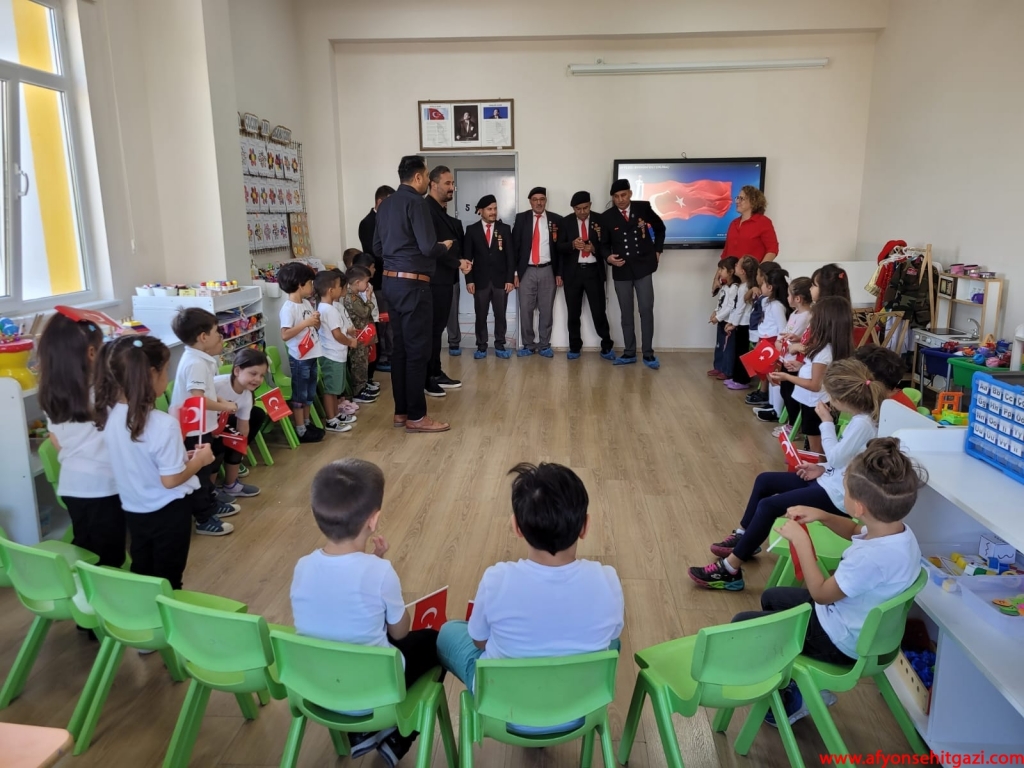 19 Eylül Gaziler Günü Dolayısıyla Asım Kocabıyık Anaokulunda Gazilerimiz Malül Gazi Cihan İlhan ,Malül Gazi Şemsettin Kumrular ,Malül Gazi Muharrem Korkusuz ,Malül Gazi Ahmet Güngör ,Malül Gazi Fatih Çiyiltepe İle Birlikte Okul Müdürümüz Ramazan Yıldız 'ın Misafiri Olduk. Okuldaki Tüm Sınıfları Ziyaret Ettik. Küçük Öğrencilerimizle Buluştuk. Kendimizi Tanıttık, Tanıştık. Gazilik Hakkında Dilimizin Döndüğünce Sohbet Ettik. Minik Yüreklerin İlgi ve Alakaları Görülmeye Değerdi.