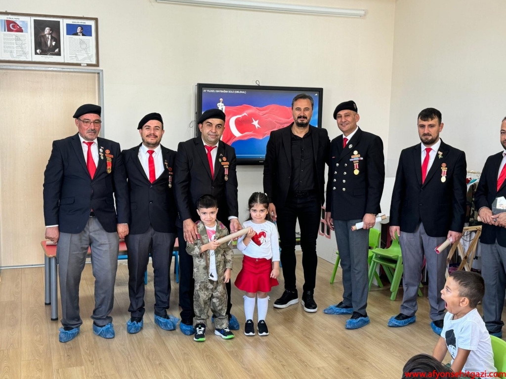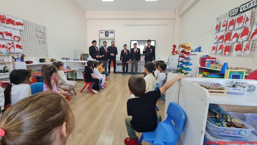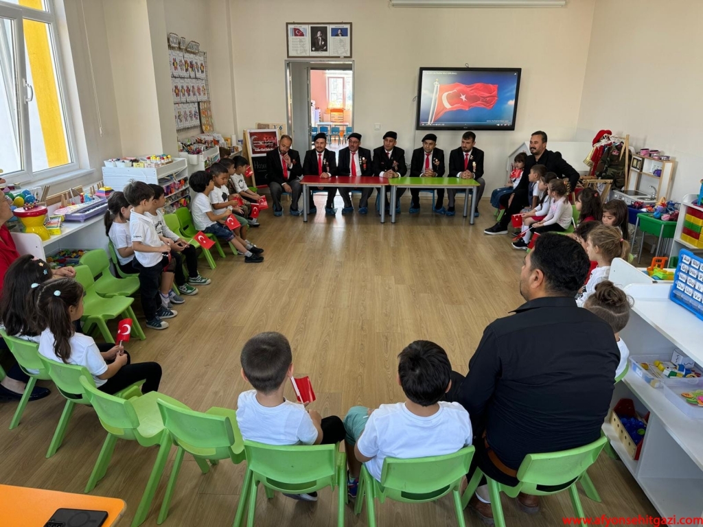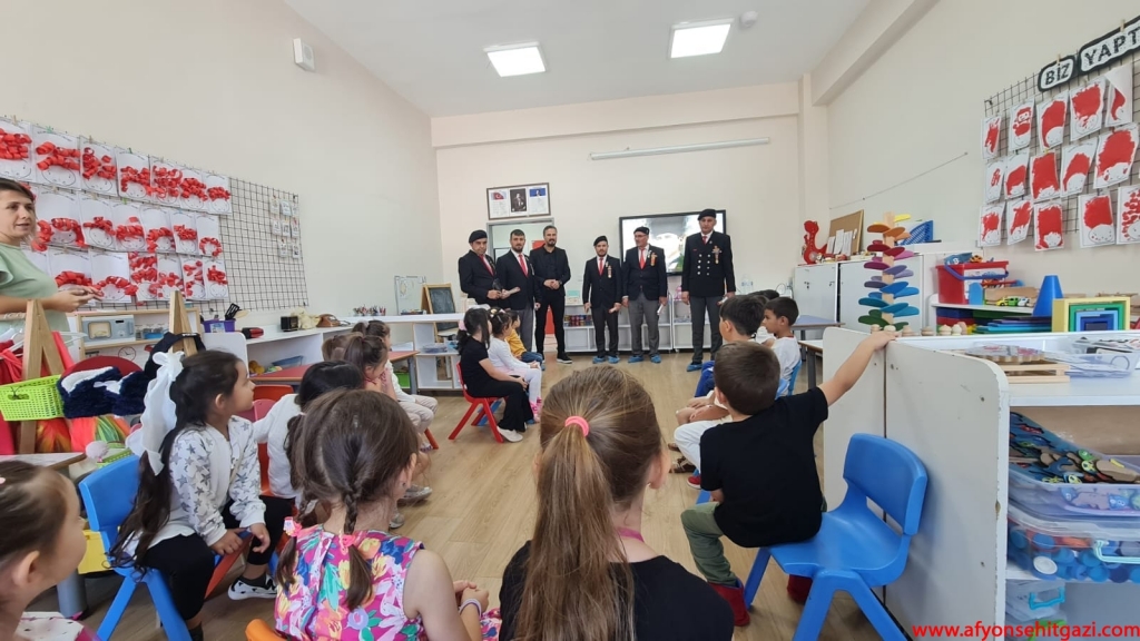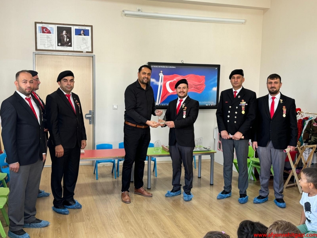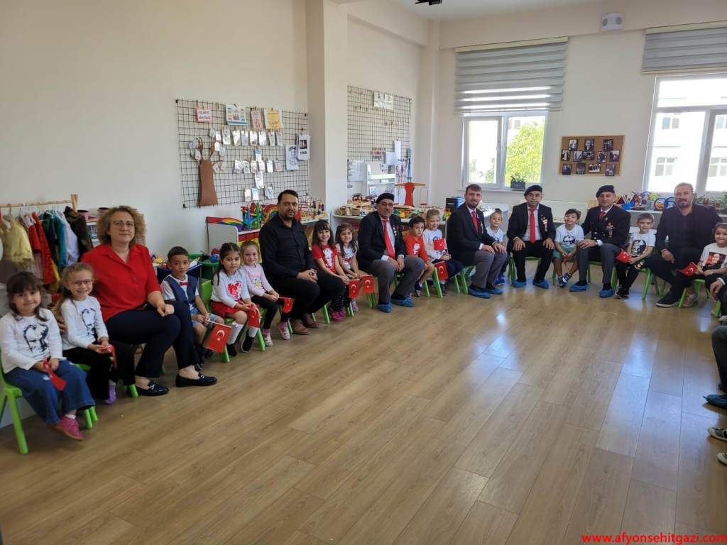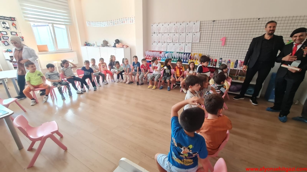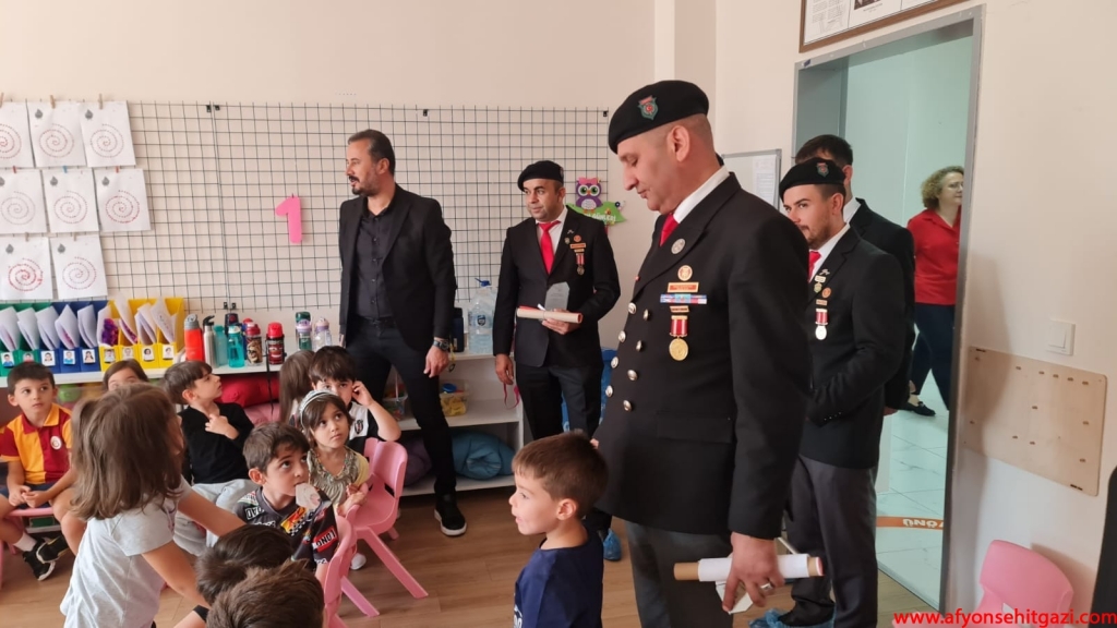 19 Eylül Gaziler Günü Dolayısıyla Asım Kocabıyık Anaokulunda Gazilerimiz Malül Gazi Cihan İlhan ,Malül Gazi Şemsettin Kumrular ,Malül Gazi Muharrem Korkusuz ,Malül Gazi Ahmet Güngör ,Malül Gazi Fatih Çiyiltepe İle Birlikte Okul Müdürümüz Ramazan Yıldız 'ın Misafiri Olduk. Okuldaki Tüm Sınıfları Ziyaret Ettik. Küçük Öğrencilerimizle Buluştuk. Kendimizi Tanıttık, Tanıştık. Gazilik Hakkında Dilimizin Döndüğünce Sohbet Ettik. Minik Yüreklerin İlgi ve Alakaları Görülmeye Değerdi.