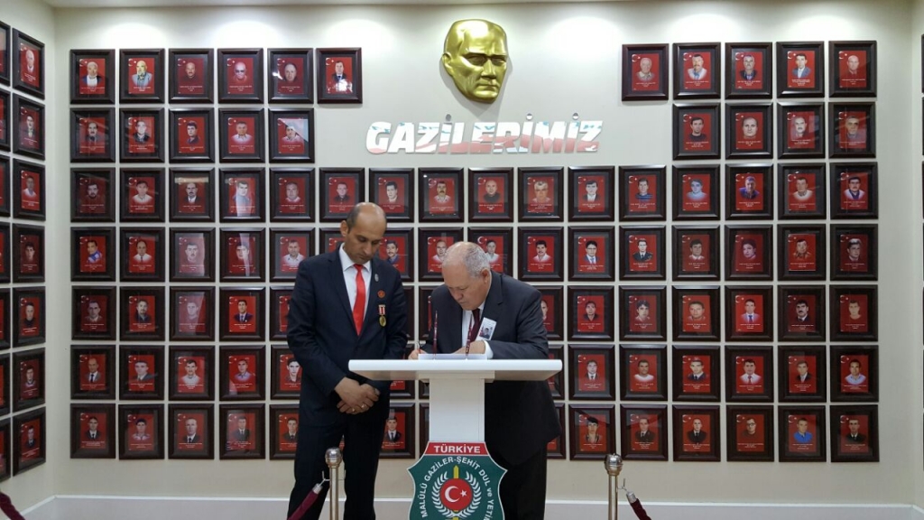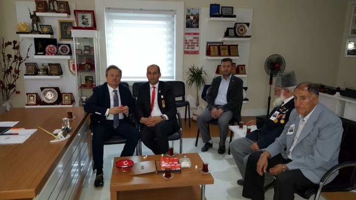 22 nci dönem Afyonkarahisar Millet Vekili ve Alternatif Politikalar Merkezi Başkanı Dr. Mahmut KOÇAK Türkiye Harp Malulü Gaziler-Şehit Dul ve Yetimleri Derneği Afyonksarahisar Şubesi’ne iadeyi ziyaret’te bulundu. Ziyarette Dernek Başkanımız İsmail Kumartaşlı dernek çalışmaları ve Afyonkarahisar Şehit, Gazileri hakkında Koçak’a bilgiler verdi. Geçmişte ülke genelinde özellikle Güneydoğu illerine yönelik birçok proje kapsamında ziyaretlerde bulunduklarını belirten Kumartaşlı milli birlik ve beraberliğimizi artıracak projelere destek olmak amacı ile sayın vekilimizin hazırladığı projelere katkıda bulunduk defalarca derneğimiz üyesi şehit ailelerimiz ve gazilerimiz ile Diyarbakır, Şırnak, Van, Mardin, Bitlis, Batman gibi illerimize gittik gönül köprüleri kurduk. Oradaki Şehit Ailelerimiz ve Gazilerimizi ziyaret ettik, acılarını paylaştık. Yine Ankara’da Politikalar Merkezi koordinesinde birçok toplantıya katıldık. En son hain 15 Temmuz gecesi gerçekleşen darbe girişimine tepki için uluslar arası STK’ların katıldığı toplantıya katılarak derneğimizi temsil ettik, tepkimizi gösterdik. Bundan sonrada sayın vekilimiz ile daha çok hayırlı işe imza atacağız. Dedi ve Koçak ‘a teşekkür etti. Ziyarete hemşerimiz Em. Tankçı Alb. Faruk Koç’ta Koçak’a eşlik etti.