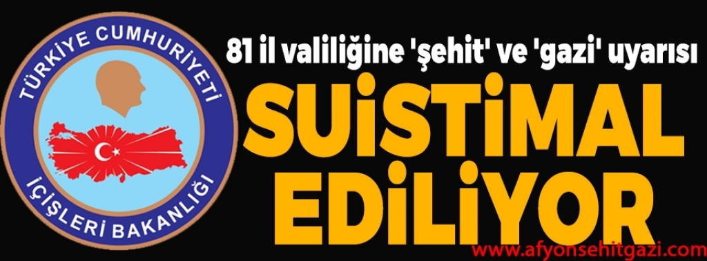 İçişleri Bakanlığı Dernekler Dairesi Başkanlığı'ndan 81 il Valiliği'ne, 'şehit' ve 'gazi' kelimeleri üzerinden suiistimale karşı uyarıda bulunuldu
