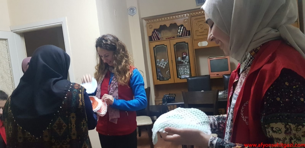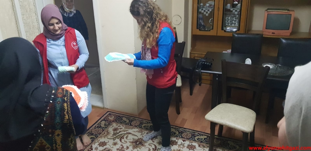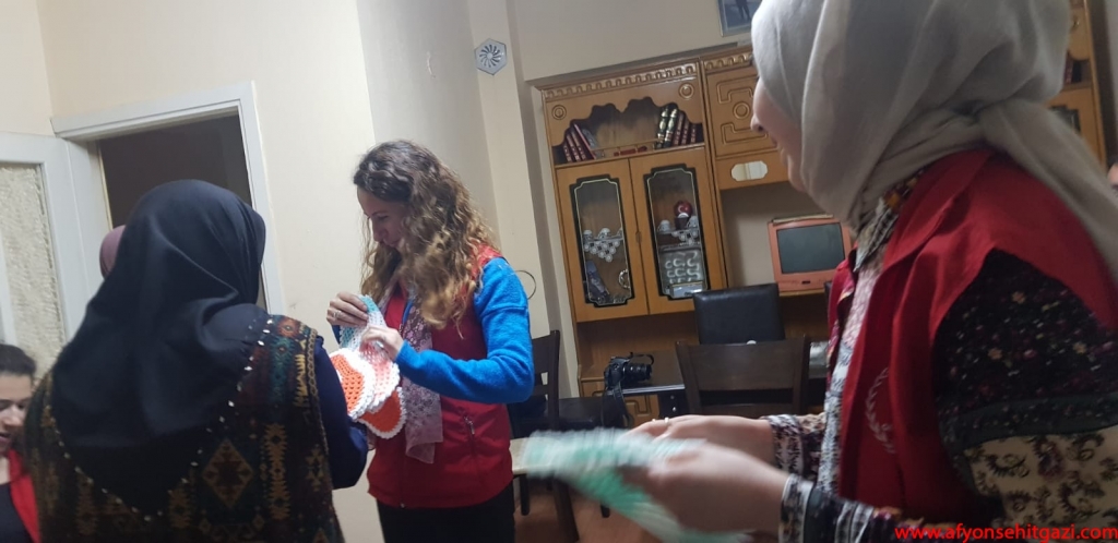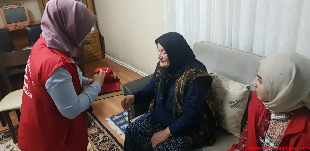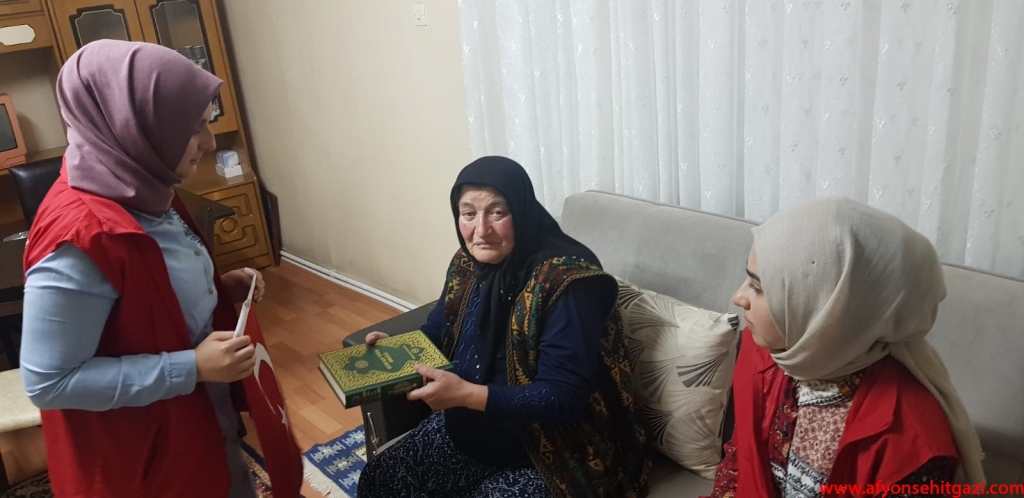 Ziyaret esnasında Şehit annemiz Döne Çalış öğrencilere kendi elleri ile ördüğü lifleri hediye ederken öğrenciler annemize Kuran-ı Kerim ve Bayrağımızı hediye etti.