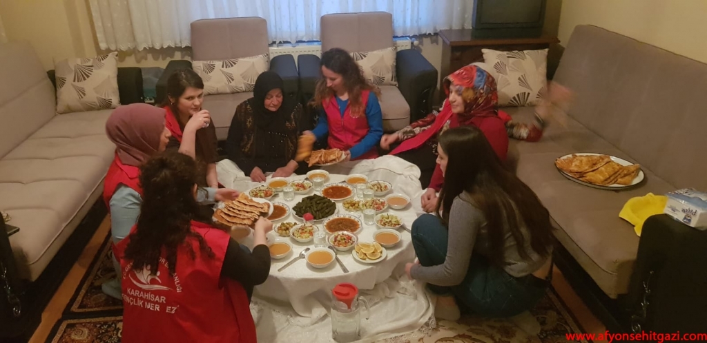 Afyonkarahisar Gençlik Merkezi Gençlik Lideri Aynur Suveren ve beraberindeki gönüllü öğrenciler,Türkiye Harp Malulü Gaziler Şehit Dul ve Yetimleri Derneği başkanı İsmail Kumartaşlı ile birlikte Şehit J.Er Metin Çalış’ın ailesini ziyaret ederek hazırladıkları yemekler ile iftar yemeği yedi.