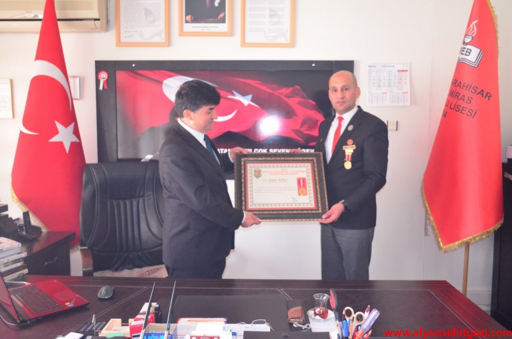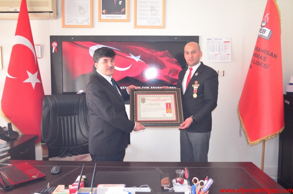 Türkiye Harp Malulü Gaziler, Şehit, Dul Ve Yetimleri Derneği Afyonkarahisar Şube Başkanı İsmail Kumartaşlı, Kıbrıs Gazisi Tahsin KOÇ, Şehit Babası Süleyman ÜYE, Şehit Babası Musa SAĞLAM, Gazi Emre ÖZTÜRK, Gazi Murat ÇETİNKAYA Kamil Miras Anadolu Lisesi Müdürü Yaşar KALE’ yi makamında ziyaret etti.