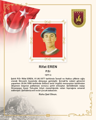 Şeh t P.Er R fat EREN, 01.06.1977 tar h nde İsma l ve Hat ce ç ft n n oğlu