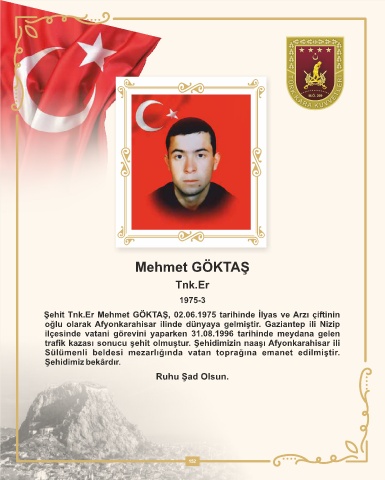 Şeh t Tnk.Er Mehmet GÖKTAŞ, 02.06.1975 tar h nde İlyas ve Arzı ç ft n n