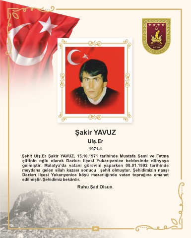 Şeh t Ulş.Er Şak r YAVUZ, 15.10.1971 tar h nde Mustafa Sam ve Fatma