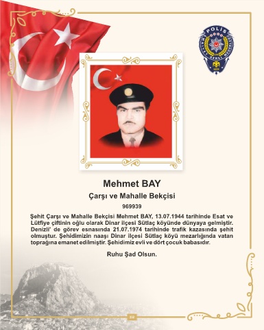 Şeh t Çarşı ve Mahalle Bekç s Mehmet BAY, 13.07.1944 tar h nde Esat ve