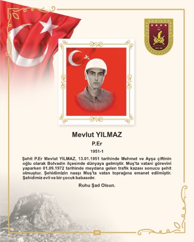 Şeh t P.Er Mevlut YILMAZ, 13.01.1951 tar h nde Mehmet ve Ayşa ç ft n n