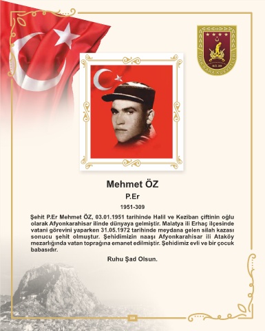 Şeh t P.Er Mehmet ÖZ, 03.01.1951 tar h nde Hal l ve Kez ban ç ft n n oğlu