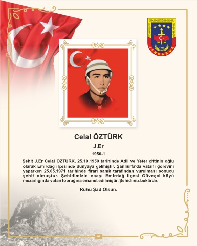 Şeh t J.Er Celal ÖZTÜRK, 25.10.1950 tar h nde Ad l ve Yeter ç ft n n oğlu