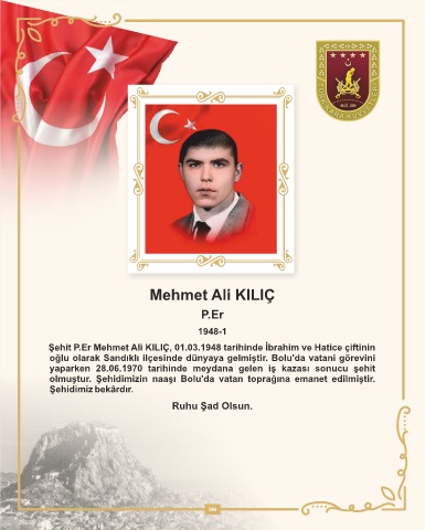 Şeh t P.Er Mehmet Al KILIÇ, 01.03.1948 tar h nde İbrah m ve Hat ce ç ft n n