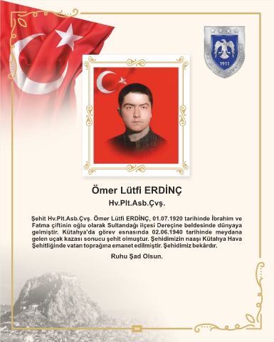 Şeh t Hv.Plt.Asb.Çvş. Ömer Lütfi ERDİNÇ, 01.07.1920 tar h nde İbrah m ve