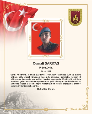 Şeh t P.Söz.Onb. Cumal SARITAŞ, 30.05.1990 tar h nde Ar f ve Em ne