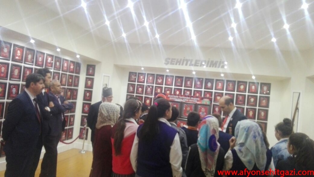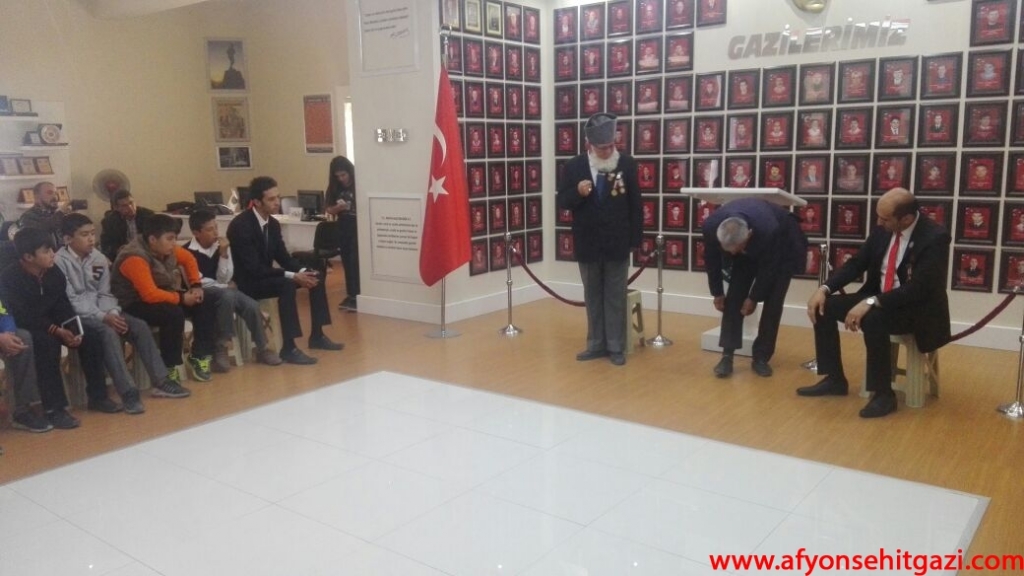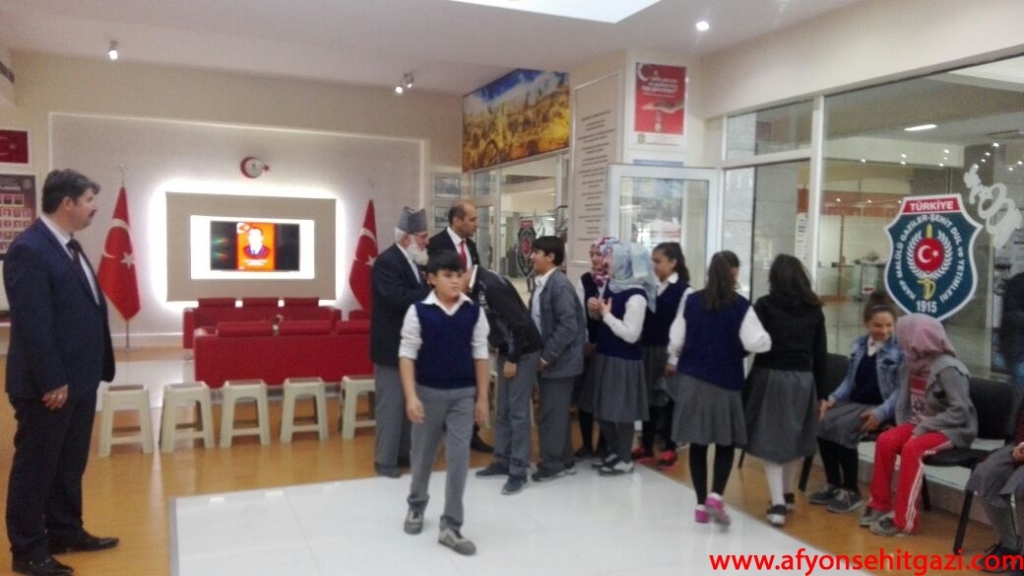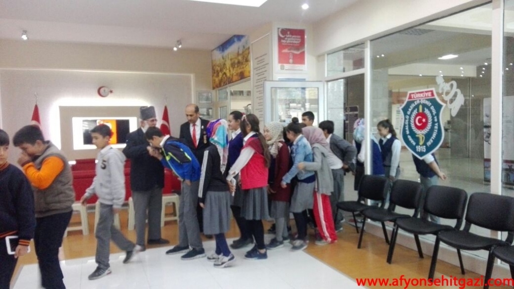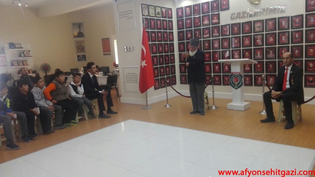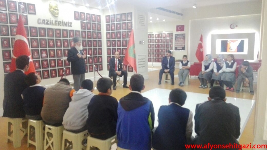 Ziyarette Dernek Başkanımız İsmail Kumartaşlı öğrencilere Afyonkarahisar Şehit ve Gazileri hakkında bilgiler verdikten sonra Şehitlik, Gazilik, Bayrak Sevgisi, Vatan sevgisi, Ülkemiz üzerinde oynana oyunlar ve bu oyunlara karşı koyabilmek için okumak gerektiğini anlattı. Terörle mücadelede sadece silahın çözüm olmadığını top yekün bir mücadele ile terörist ve yandaşlarına karşı konulması gerektiğini bunu yapabilmek için de kişinin bilgili olması gerektiği aslında en büyük silahın öğrencilerimizin ellerinde tuttukları kalam,kitap,defter olması gerektiğinin üzerinde defalarca durdu.Kıbrıs Gazisi Tahsin Koç öğrencilere savaş anılarını anlattıktan sonra ders çalışmalarını nasihat etti.