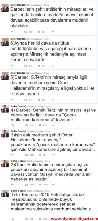 Adalet Bakanı Bekir Bozdağ,Şehit Ömer Halisdemir'in mirasçılarına dava açılmadığını twitter hesabından yaptığı açıklama ile belirtti.