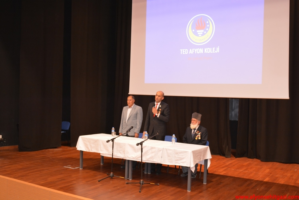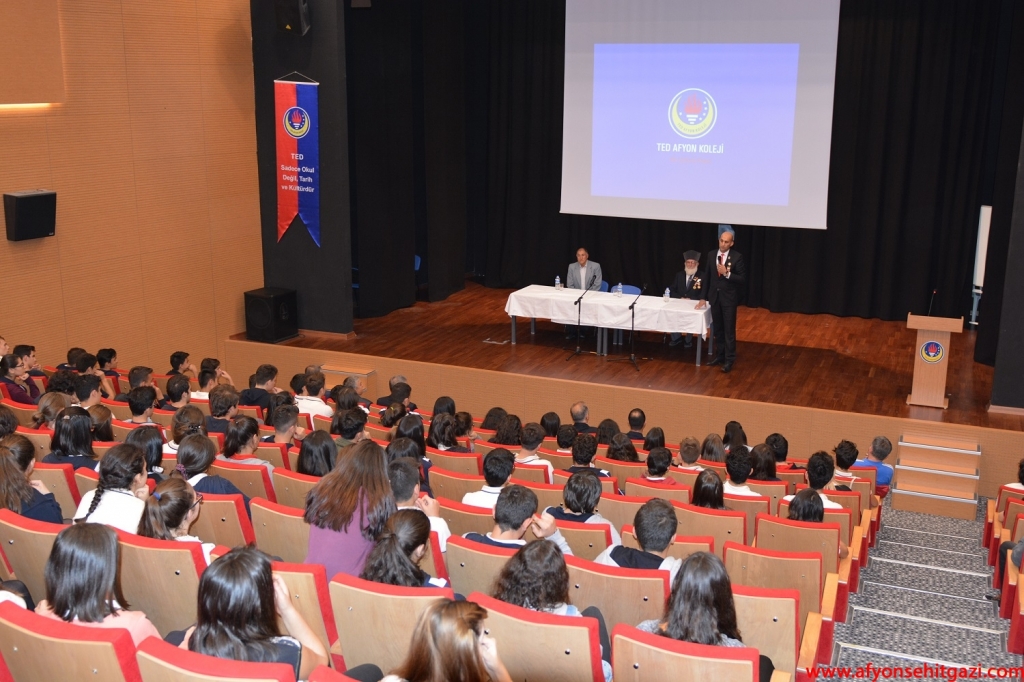 Demokrasi Zaferi ve Şehitler için yapılan Anma Günü Programında Türkiye Harp Malulü Gaziler Şehit Dul ve Yetimleri Derneği Afyon Şube Başkanı Malül P.Uzm. Çvş İsmail Kumartaşlı, Kıbrıs Gazisi Tahsin Koç, Şehit P.Ütğm. Sami Çifci’nin babası Mehmet Çifci TED Afyon Koleji öğrencileri için söyleşi programı düzenlediler. Söyleşide Şehitlik ve Gazilik olgusu üzerine paylaşımlarda bulunuldu aynı zamanda Çanakkale’den Kocatepe’ye, Sarıkamış’tan Kıbrıs’a tarihin farklı dönemlerindeki şehitlerimiz anıldı. Söyleşinin her saniyesini dikkatle ve saygıyla izleyen TED’li öğrenciler Gazilerimiz tarafından övgüyle karşılandı.