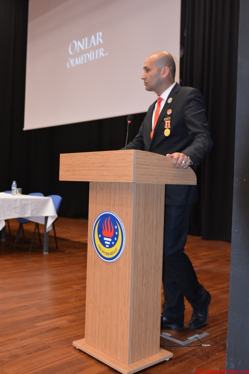 TED Afyon Koleji Yönetim Kurulu Başkanı Dr.Mustafa Enis Arabacı Plaket töreni sırasında yaptığı konuşmasında “Vatan bilinci, bayrak bilinci ve şehitlik kavramı bizim milletimiz kadar hiçbir millette bu kadar derin ve etkili değildir. Bizim milletimizi tarih boyunca farklı kılan önemli özelliklerimizden bir kısmı da bunlardır. Bu sunumda da bu farkımızı, gözümüz yaşlı bir şekilde hatırlatan değerli konuşmacılara teşekkür ediyorum. Sayın Dernek Başkanımız Kumartaşlı’nın yoğun ve fedakar bir biçimde tüm şehit aileleriyle ilgilenme konusunda liderlik yaptığı için de takdire şayan olduğunu belirtmek isterim. Arabacı sözlerini Mehmet Akifin “Sana dar gelmeyecek makberi kimler kazsın gömelim gel seni tarihe desem sığmazsın,tüllenen mağribi akşamları sarsam yaran yine bir şey yapabildim diyemem hatırana” mısralarıyla tamamladı.