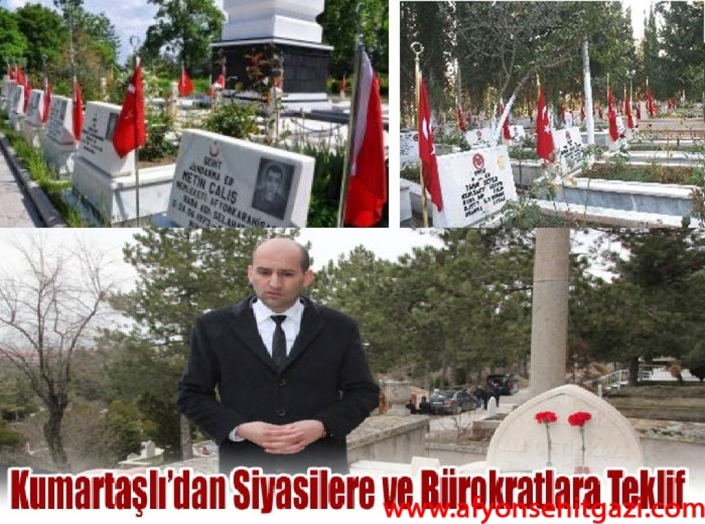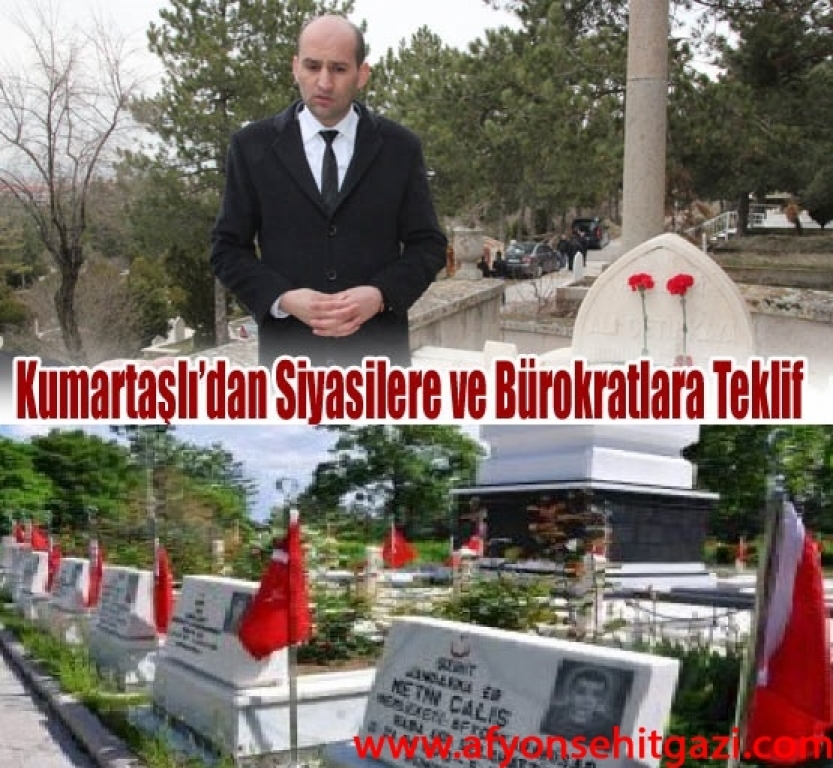Türkiye Harp Malülü Gaziler Şehit Dul ve Yetimleri Derneği Afyonkarahisar Şube Başkanı İsmail Kumartaşlı ülke genelindeki şehit mezarlarının durumlarının iyi olmadığını belirterek şehit mezarlarının bakım onarımının devlet eli ile düzenli olarak yapılıp şehitlerimizin baş uçlarına şanlı bayrağımızın asılması için ilimiz millet vekillerinden kanuni düzenleme yapılmasını istedi.