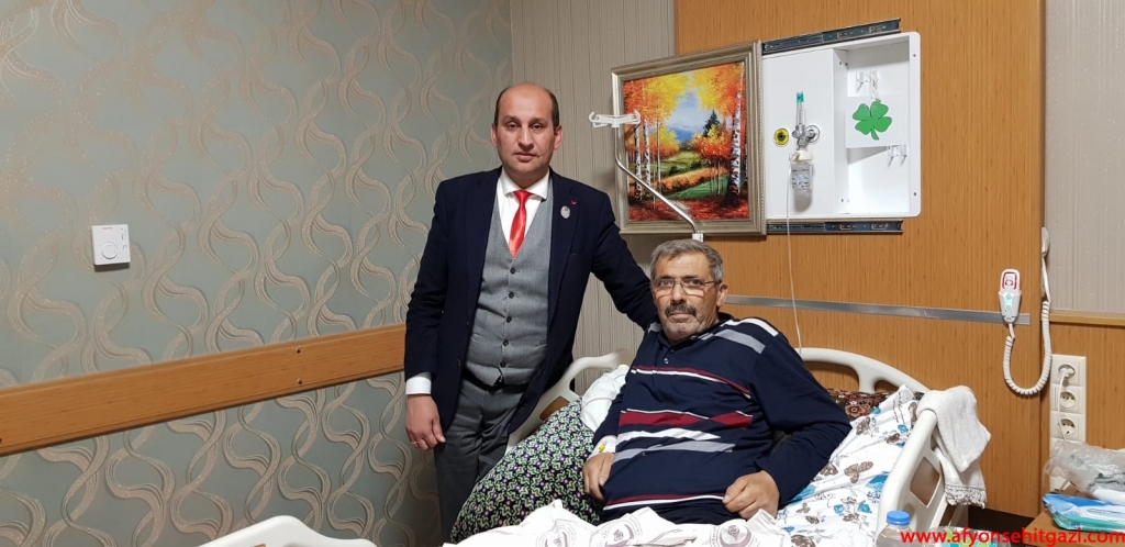 Başkan Kumartaşlı Afyon Sağlık Bilimleri Üniversitesi Araştırma Hastanesi Göğüs Onkoloji servisin’de tedavi gören Şehit babamız Osman Şimşek’e ailesi ile birlikte geçmiş olsun ziyaretinde bulundu.