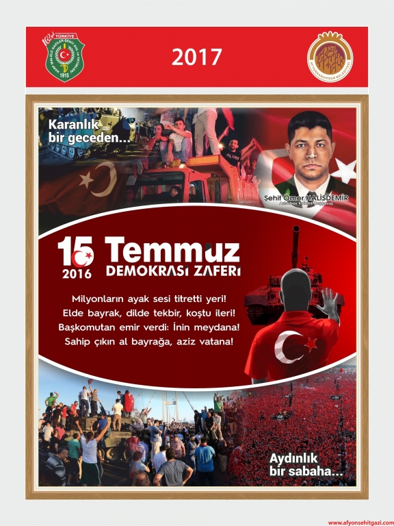 Rengini şehitlerimizin kanından alan Ay-Yıldızlı al bayrağımızın gölgesi altında sonsuza kadar hür ve bağımsız yaşamaya ant içmiş aziz milletimiz, 15 Temmuz gecesi Cumhurbaşkanımız Sayın Recep Tayyip Erdoğan’ın çağrısıyla çıktıkları sokaklarda, yurdun dört bir köşesinde tanklara, bombalara, kurşunlara göğsünü siper etmiş, bu hain girişimini vatansever güvenlik güçlerimizle birlikte canlarını vererek, kanlarını dökerek engellemiştir.