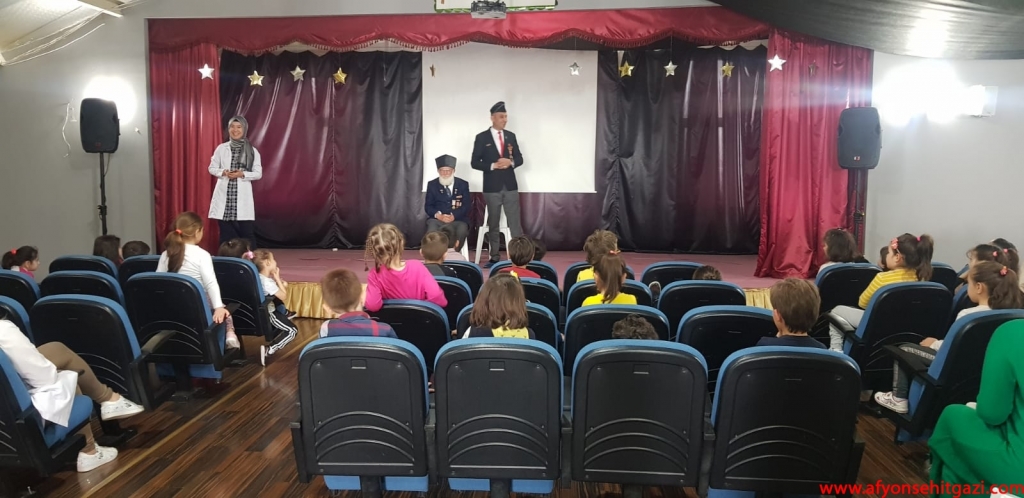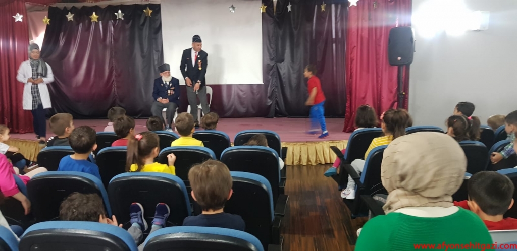 Derneğimiz Türkiye Harp Malulü Gaziler Şehit Dul ve Yetimleri Derneği Afyonkarahisar Şube Başkanlığı tarafından okullarda düzenlenen programlar ile öğrencilere şehitlik ve gazilik gaziler tarafından anlatılıyor. Program Türkiye Harp Malulü Gaziler Şehit Dul ve Yetimleri Derneği Afyonkarahisar Şube Başkanı Malül Gazi P. Uzm. Çvş. İsmail Kumartaşlı ve Kıbrıs Gazisi Tahsin Koç’un anıları, yaşadıkları, vatan sevgisi, bayrak sevgisi ile ilgili anlatımları ile devam ediyor. Programın son kısmında gazilerimiz öğrencilerin merak ettiği konulara yönelik sorularına cevap vererek programı sonlandırıyorlar.