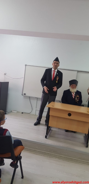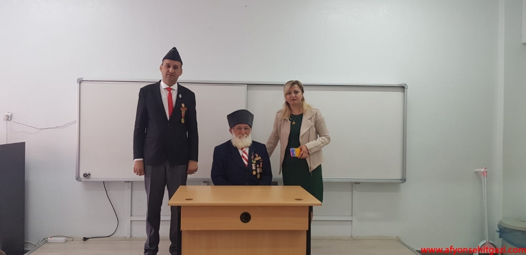 Türkiye Harp Malulü Gaziler Şehit Dul ve Yetimleri Derneği Afyonkarahisar Şube Başkanı Malül Gazi P. Uzm. Çvş. İsmail Kumartaşlı ise Şehitlik ve Gazilik olgusu üzerine paylaşımlarda bulundu aynı zamanda Çanakkale’den Kocatepe’ye, Sarıkamış’tan Kıbrıs’a tarihin farklı dönemlerindeki şehitlerimiz anıldı. Söyleşinin her saniyesini dikkatle ve saygıyla izleyen öğrenciler Gazilerimiz tarafından övgüyle karşılandı.