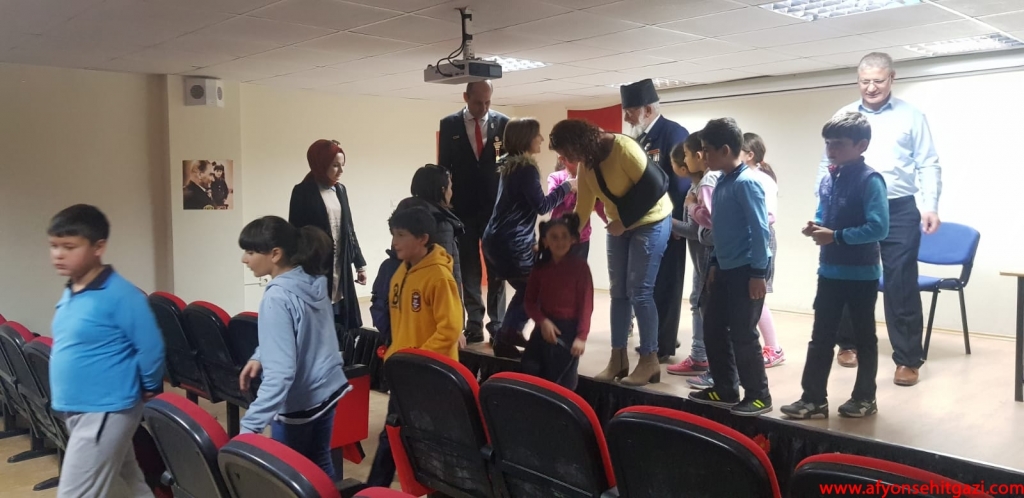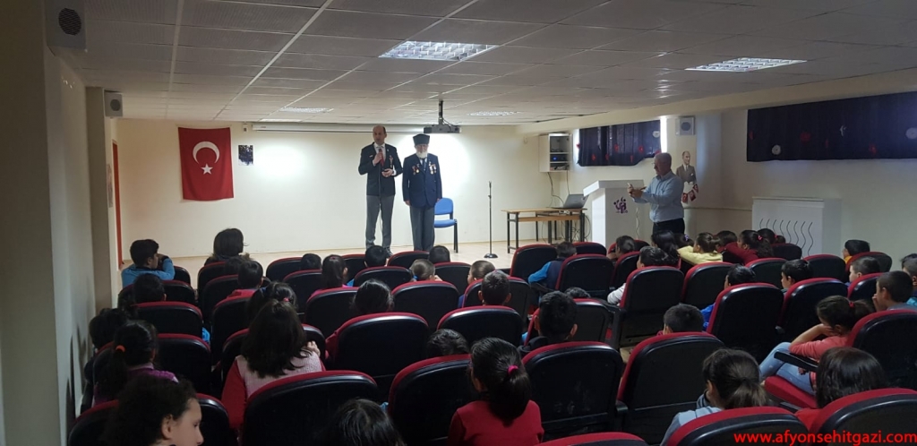 Derneğimiz Türkiye Harp Malulü Gaziler Şehit Dul ve Yetimleri Derneği Afyonkarahisar Şube Başkanlığı tarafından okullarda düzenlenen programlar ile öğrencilere şehitlik ve gazilik gaziler tarafından anlatılıyor. Program Türkiye Harp Malulü Gaziler Şehit Dul ve Yetimleri Derneği Afyonkarahisar Şube Başkanı Malül Gazi P. Uzm. Çvş. İsmail Kumartaşlı ve Kıbrıs Gazisi Tahsin Koç’un anıları, yaşadıkları, vatan sevgisi, bayrak sevgisi ile ilgili anlatımları ile devam ediyor. Programın son kısmında gazilerimiz öğrencilerin merak ettiği konulara yönelik sorularına cevap vererek programı sonlandırıyorlar.