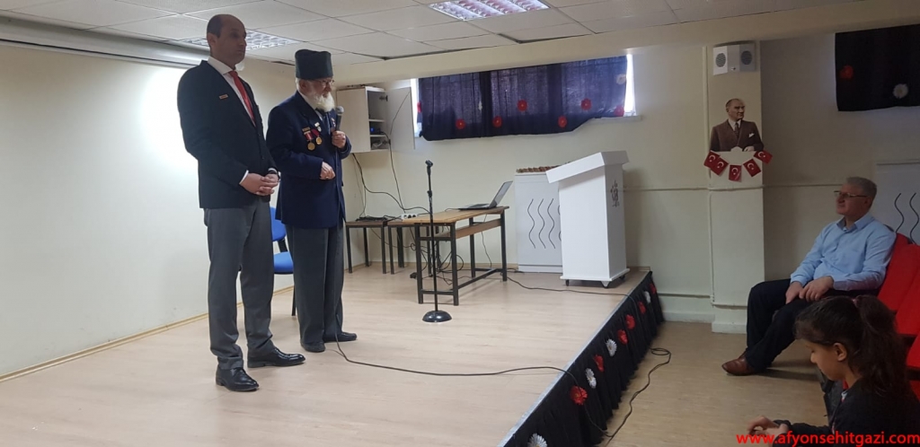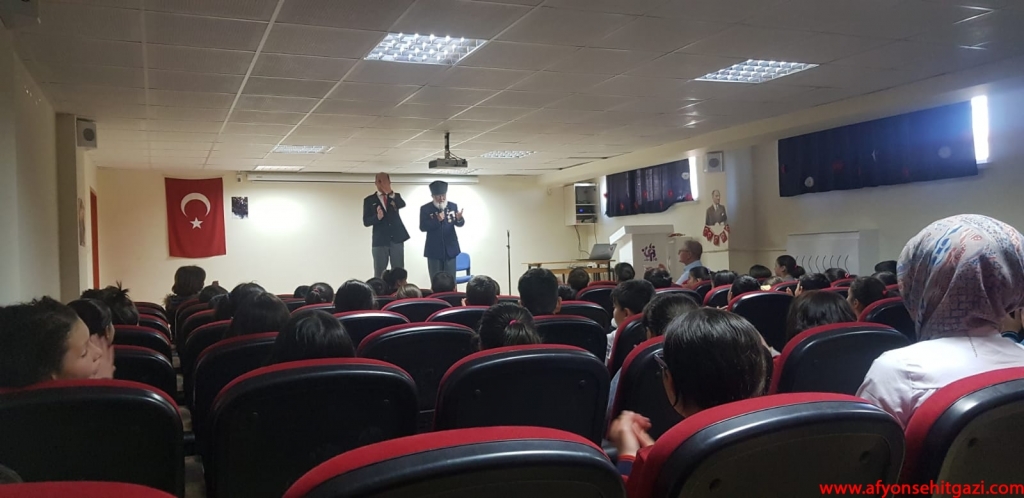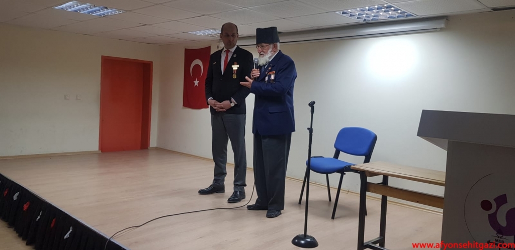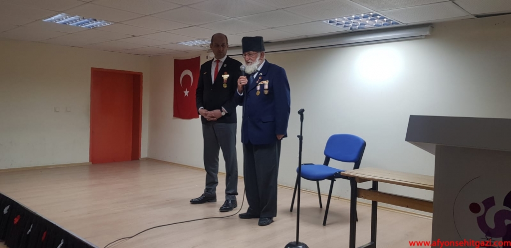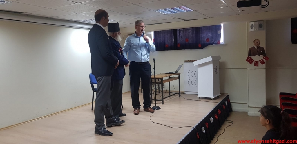 Türkiye Harp Malulü Gaziler Şehit Dul ve Yetimleri Derneği Afyonkarahisar Şube Başkanı Malül Gazi P. Uzm. Çvş. İsmail Kumartaşlı ise Şehitlik ve Gazilik olgusu üzerine paylaşımlarda bulundu aynı zamanda Çanakkale’den Kocatepe’ye, Sarıkamış’tan Kıbrıs’a tarihin farklı dönemlerindeki şehitlerimiz anıldı. Söyleşinin her saniyesini dikkatle ve saygıyla izleyen öğrenciler Gazilerimiz tarafından övgüyle karşılandı.