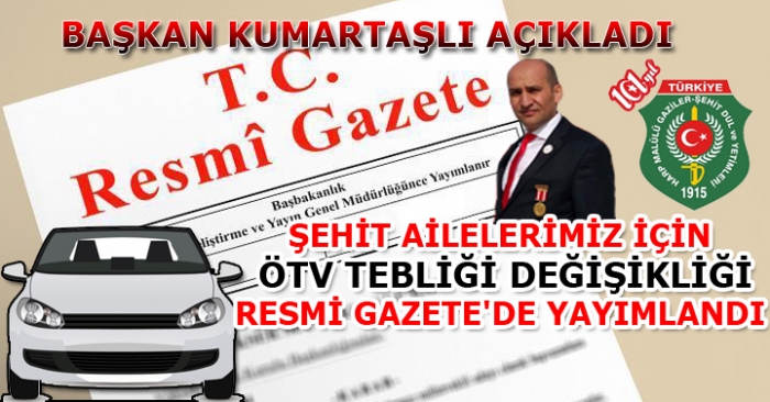 Maliye Bakanlığı (Gelir İdaresi Başkanlığı)’ndan: ÖZEL TÜKETİM VERGİSİ (II) SAYILI LİSTE UYGULAMA GENEL TEBLİĞİNDE DEĞİŞİKLİK YAPILMASINA DAİR TEBLİĞ (SERİ NO: 2) MADDE 1 – 18/4/2015 tarihli ve 29330 sayılı Resmî Gazete’de yayımlanan Özel Tüketim Vergisi (II) Sayılı Liste Uygulama Genel Tebliğinin (II/C) kısmının 5 inci bölümünden sonra gelmek üzere aşağıdaki bölüm eklenmiştir. “6. Hayatını Kaybetmiş Harp veya Vazife Malullerinin Yakınlarının Taşıt Alımında İstisna 6.1. Kapsam Özel Tüketim Vergisi Kanununun 7 nci maddesinin birinci fıkrasının (8) numaralı bendine göre, (II) sayılı listede yer alan kayıt ve tescile tabi mallardan; 87.03 (motor silindir hacmi 1.600 cm³'ü aşanlar hariç), 87.04 (motor silindir hacmi 2.800 cm³'ü aşanlar hariç) ve 87.11 G.T.İ.P. numaralarında yer alanların, 12/4/1991 tarihli ve 3713 sayılı Terörle Mücadele Kanununun ek 1 inci maddesinin ikinci fıkrasının (a) ve (b) bentlerinde sayılan kişilerden hayatını kaybetmiş olanların eş veya çocuklarından birisi, eş ve çocuğu yoksa ana veya babasından birisi tarafından bir defaya mahsus olmak üzere ilk iktisabı ÖTV’den müstesnadır. 6.2. İstisnadan Yararlanılacak Taşıtlar Özel Tüketim Vergisi Kanununun 7 nci maddesinin birinci fıkrasının (8) numaralı bendine göre, Kanuna ekli (II) sayılı listedeki mallardan, Türk Gümrük Tarife Cetvelinin; • 87.03 tarife pozisyonunda yer alan, 1600 cm³ veya altında motor silindir hacmine sahip binek otomobil, panelvan, pick-up, arazi taşıtı, ATV, jeep, steyşın vagon, vb. taşıtların, • 87.04 tarife pozisyonunda yer alan, eşya taşımaya mahsus, 2800 cm³ veya altında motor silindir hacmine sahip van, panelvan, kamyonet, pick-up, vb. taşıtların, • 87.11 tarife pozisyonunda yer alan, motor silindir hacmine bakılmaksızın motosikletlerin Tebliğin (II/C/6.3.) bölümünde belirtilen kişiler tarafından bir defaya mahsus olmak üzere ilk iktisabı ÖTV’den müstesnadır. 6.3. İstisnadan Yararlanacak Kişiler Özel Tüketim Vergisi Kanununun 7 nci maddesinin birinci fıkrasının (8) numaralı bendinde düzenlenen istisnadan, 3713 sayılı Terörle Mücadele Kanununun ek 1 inci maddesinin ikinci fıkrasının (a) ve (b) bentlerinde sayılan; a) 8/6/1949 tarihli ve 5434 sayılı Türkiye Cumhuriyeti Emekli Sandığı Kanununun mülga 64 üncü maddesi, 31/5/2006 tarihli ve 5510 sayılı Sosyal Sigortalar ve Genel Sağlık Sigortası Kanununun 47 nci maddesinin sekizinci fıkrası, 3713 sayılı Kanunun 21 inci maddesinin birinci fıkrasının (j) bendi kapsamına girenler hariç olmak üzere 3/11/1980 tarihli ve 2330 sayılı Nakdi Tazminat ve Aylık Bağlanması Hakkında Kanuna göre veya 2330 sayılı Kanun hükümleri uygulanarak aylık bağlanmasını gerektiren kanunlara göre harp veya vazife malulü sayılanlardan, b) 5434 sayılı Türkiye Cumhuriyeti Emekli Sandığı Kanununun mülga 45 inci maddesi ile 5510 sayılı Sosyal Sigortalar ve Genel Sağlık Sigortası Kanununun 47 nci maddesinin birinci fıkrasında belirtilen haller kapsamında vazife malulü sayılan; Türk Silahlı Kuvvetleri, Jandarma Genel Komutanlığı ve Sahil Güvenlik Komutanlığının erbaş ve erler dâhil askeri personeli ile Emniyet Teşkilatının Emniyet Hizmetleri Sınıfına mensup personelinden hayatını kaybetmiş olanların eş veya çocuklarından birisi, eş ve çocuğu yoksa anne veya babasından birisi bir defaya mahsus yararlanabilir. İstisnadan yararlanma hakkı, belirtilen kişilerin eş veya çocuğuna, eş ve çocuğu yoksa anne veya babasına tanınmış olup, bu yakınlardan hiçbirisinin olmaması veya istisna hakkından yararlanmamaları durumunda dahi istisnadan yararlanma hakkı, hayatını kaybetmiş harp veya vazife malulünün kardeşi, yeğeni, kayın hısımları vb. başka bir yakını tarafından kullanılamaz. Harp veya vazife malulünün hayatını kaybettiği tarih itibariyle eşi ve/veya çocuğu bulunması halinde, bu haktan münhasıran eş veya çocuk yararlanabilir. Eş veya çocuğun bu haktan herhangi bir nedenden dolayı yararlanmaması, anne veya babanın istisnadan yararlanma hakkını sağlamaz. Tekrar evlenen dul eşin istisnadan faydalanamayacağı tabiidir. Ancak, hayatını kaybetmiş harp veya vazife malulünün çocuklarının evli olmaları veya sonradan evlenmeleri istisnadan yararlanma hakkını ortadan kaldırmaz. 6.4. İstisnanın Uygulanması Tebliğin (II/C/6.3) bölümünde sayılan harp veya vazife malullerinden hayatını kaybetmiş olanların eş veya çocuklarından birisi, eş ve çocuğu yoksa anne veya babasından birisinin istisnadan yararlanmak istemesi durumunda, hayatını kaybetmiş harp veya vazife malulünün eşi, çocuğu, anne veya babası olduğuna dair Sosyal Güvenlik Kurumundan “Malullük Durum Belgesi” almaları gerekir. Malullük Durum Belgesinde, yakını olunan hayatını kaybetmiş harp veya vazife malulünün; Özel Tüketim Vergisi Kanununun 7 nci maddesinin birinci fıkrasının (8) numaralı bendi hükmü ile atıfta bulunulan 3713 sayılı Terörle Mücadele Kanununun ek 1 inci maddesinin ikinci fıkrasının (a) veya (b) bentlerinde sayılan kişilerden olduğu bilgisi, kimlik bilgileri (adı, soyadı, baba adı, doğum yeri ve tarihi ile T.C. Kimlik Numarası, T.C. Kimlik Numarasının bulunmaması halinde Nüfus Cüzdanı Seri ve No.su) ile belgeyi talep eden kişinin kimlik bilgileri (adı, soyadı, baba adı, doğum yeri ve tarihi ile T.C. Kimlik Numarası) ve hayatını kaybetmiş harp veya vazife malulü ile yakınlık ilişkisinin (eş, çocuk, anne, baba) eksiksiz yer alması gerekmektedir. İstisnadan yararlanmak isteyen kişilerin ayrıca ilgili nüfus müdürlüğünden hayatını kaybetmiş harp veya vazife malulüne ait “Vukuatlı Nüfus Kayıt Örneği Belgesi” almaları gerekir. İstisnadan, hayatını kaybetmiş harp veya vazife malulünü