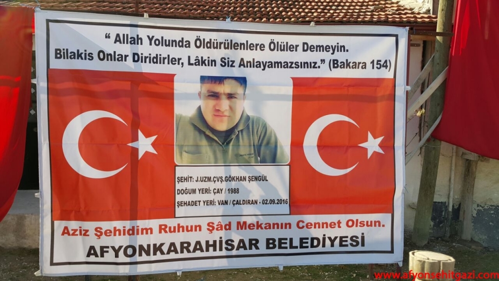 Afyonkarahisar Belediyesi tarafından 03–09–2016 tarihinde Van / Çaldıran’da terör saldırısında şehit düşen J. Uzman Çavuş Gökhan ŞENGÜL’ün Çay ilçesi Akkonak Kasabasındaki baba evinde mevlid-i şerif okutuldu.