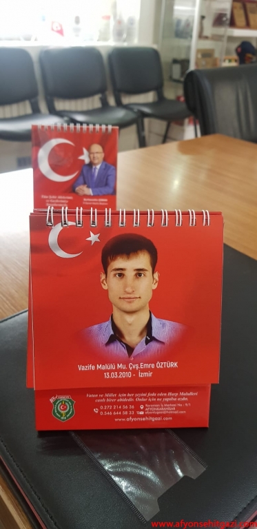 Türkiye Harp Malulü Gaziler, Şehit, Dul ve Yetimleri Derneği Afyonkarahisar Şubesi tarafından dizayn edilen ve İl Özel idaresi tarafından bastımı yaptırılan her şehit ve gazi için hazırlanan özel takvimin dağıtımı sürüyor.