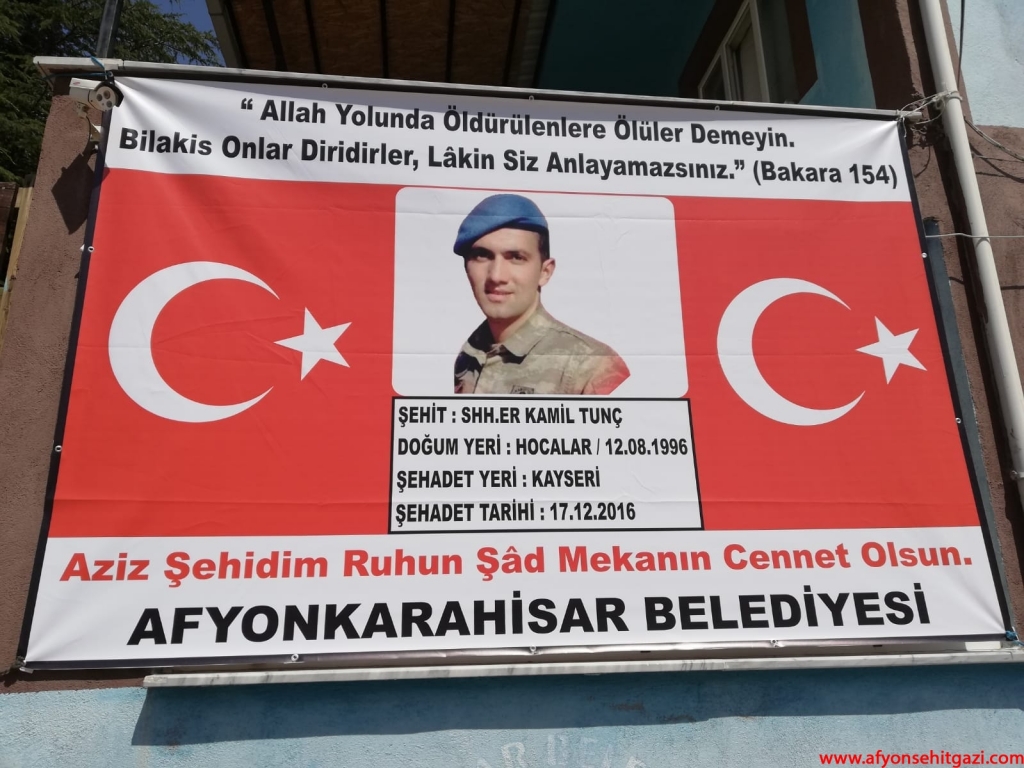 Şehit aileleri ve gazilerin her zaman yanında olan Afyonkarahisar Belediyesi tarafından askerlik görevini yaptığı Kayseri’de 17 Aralık 2016'da teröristlerin hain saldırısı sonucu şehit olan Şehit Shh. Er Kamil Tunç’un baba ocağı Hocalar'da mevlid-i şerif programı düzenledi.