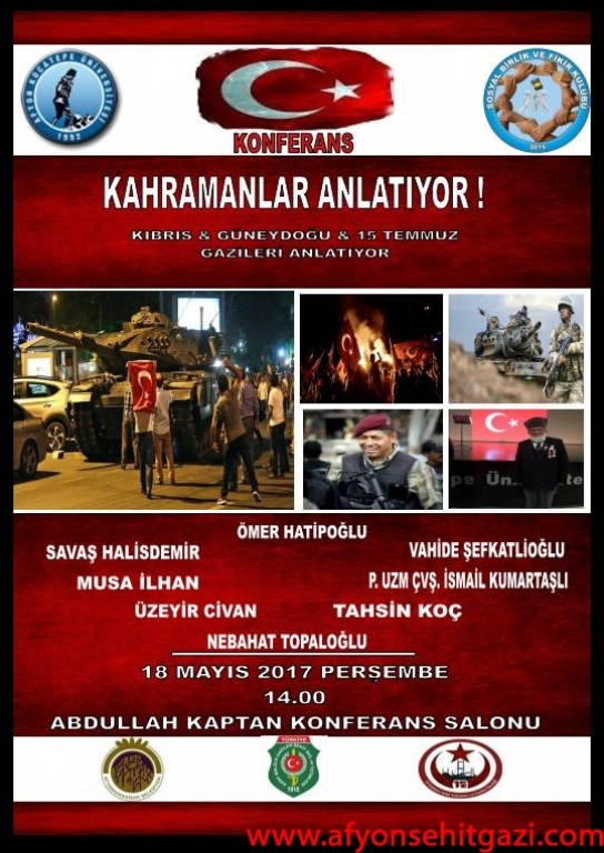 Afyon Kocatepe Üniversitesi Sosyal Birlik ve Fikir Kulübü tarafından AKÜ Abdullah Kaptan konferans salonunda "Kahramanlar Anlatıyor" başlıklı söyleşi programı düzenlendi.