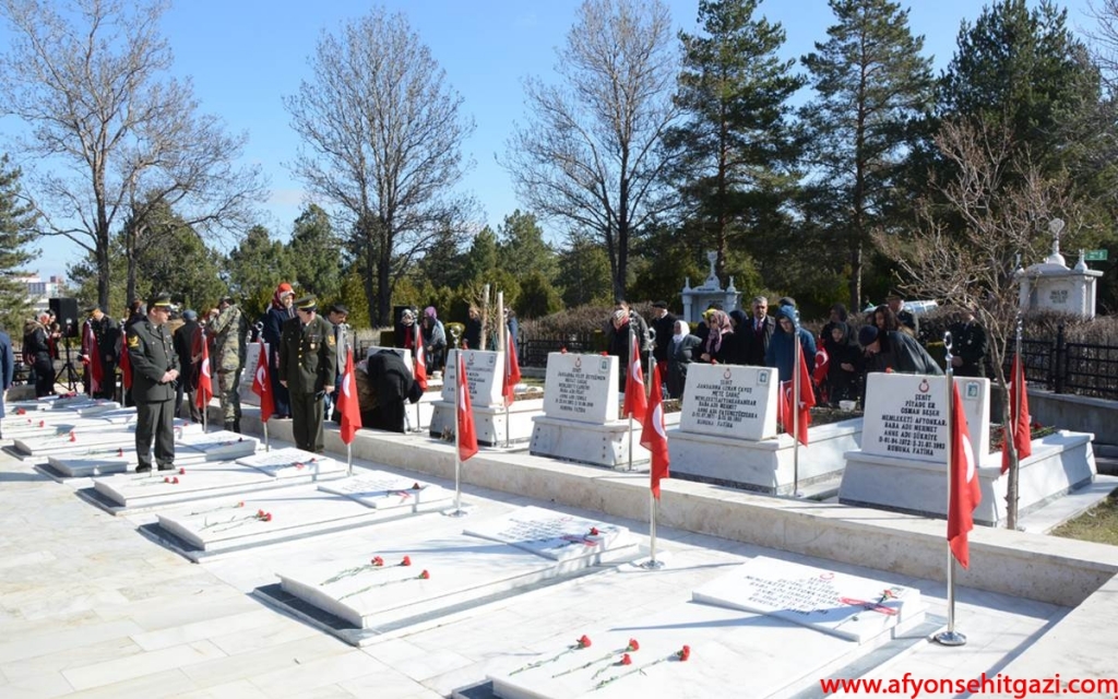 Çanakkale Zaferi'nin 102. yılını kutlama ve kutsal vatanımız için canlarını sakınmadan feda eden şehitlerimizin ‘Şehitler Günü’nü anma töreni tüm yurtta yapıldığı gibi ilimizde de Kocatepe Mezarlığında bulunan Şehitlikte çelenk sunma töreni ile başladı.