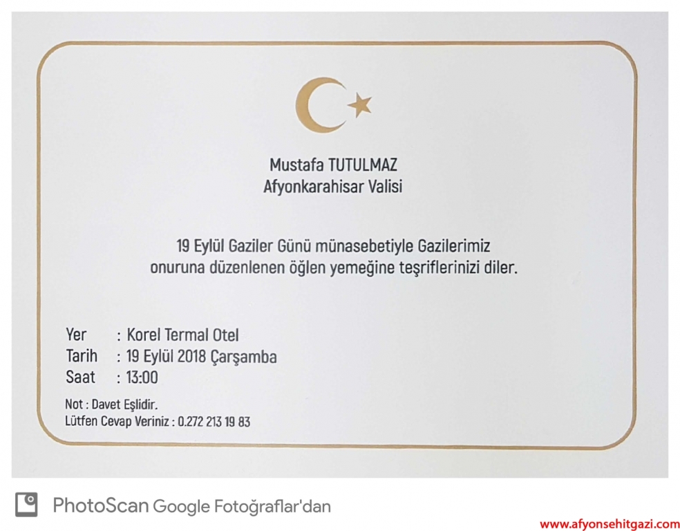 Saat:13:00 da Korel Termal Otelde Afyonkarahisar Valiliğinin Gaziler Onuruna vereceği öğle yamaği ile devam edecek,