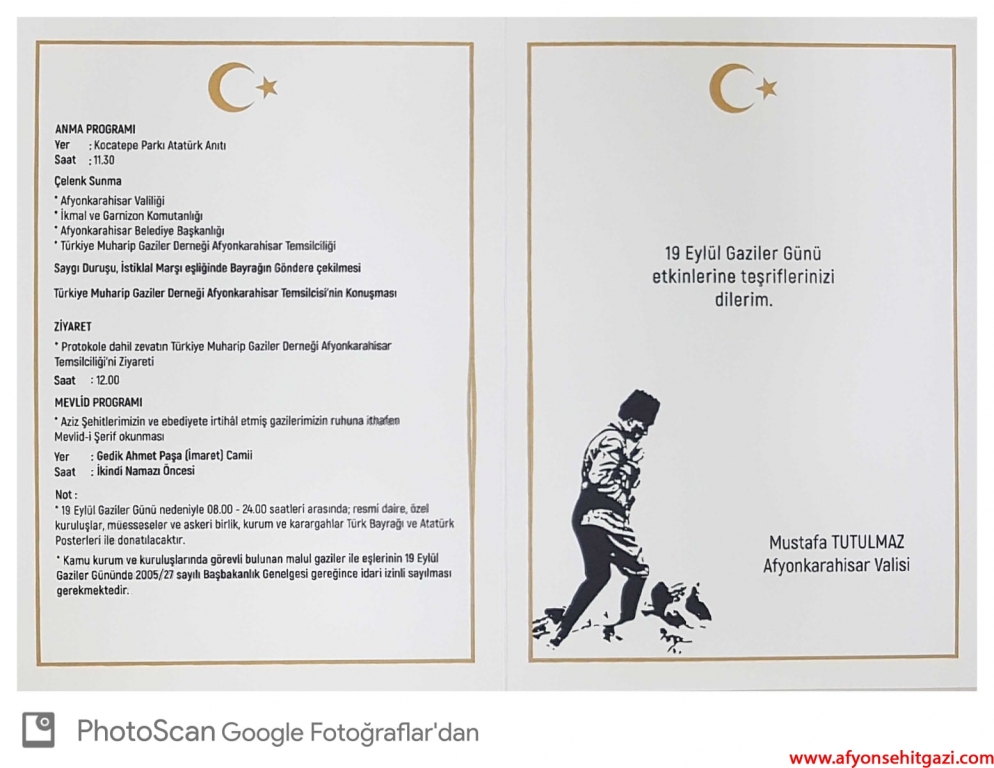 19 EYLÜL GAZİLER GÜNÜ PROGRAMI BELİRLENDİ.