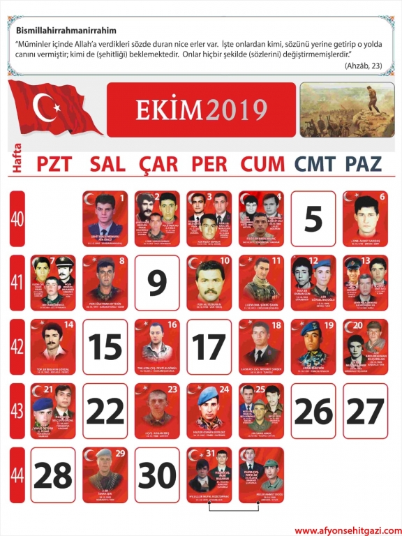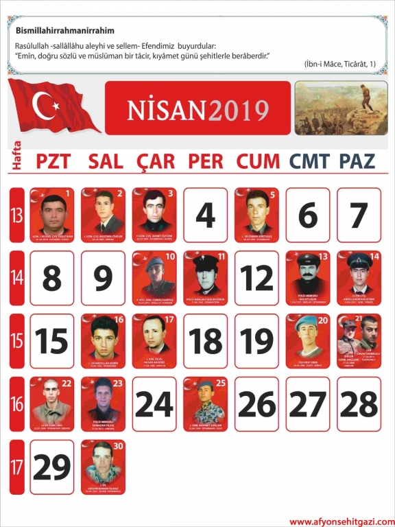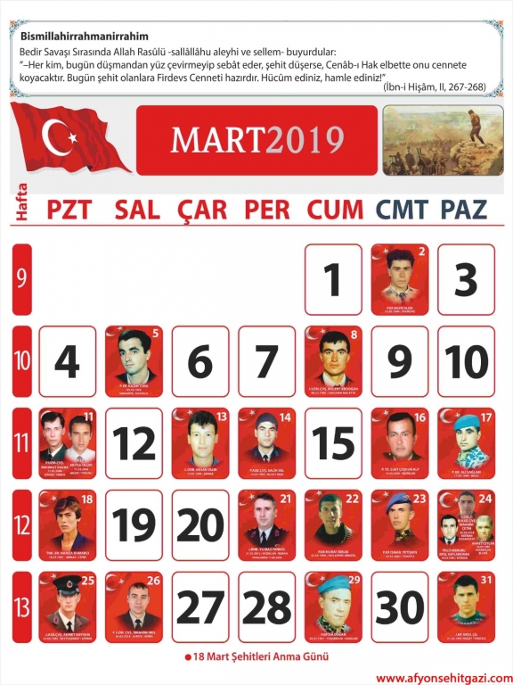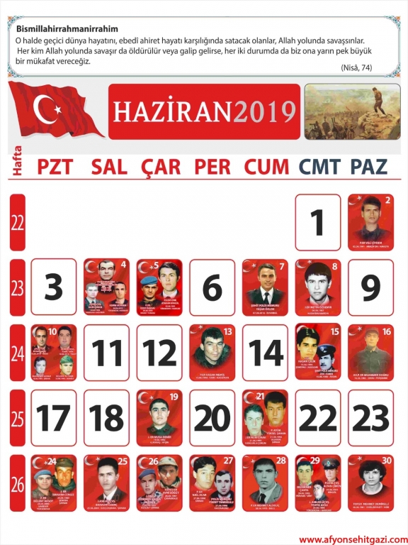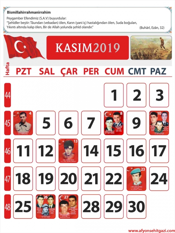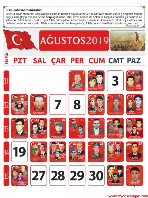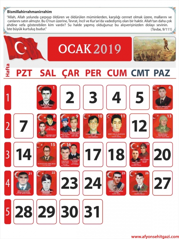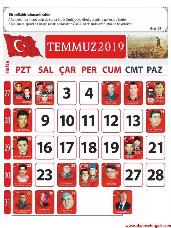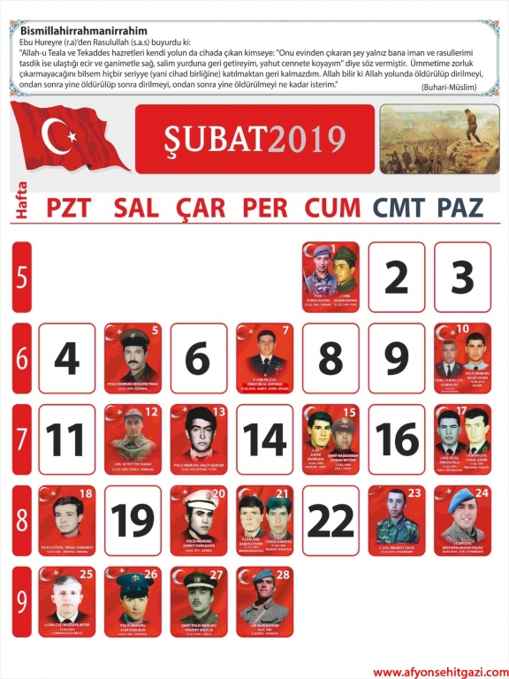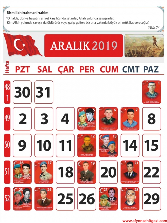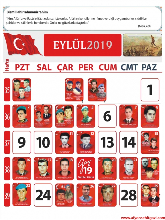 2019 YILI ŞEHİTLER TAKVİMİ YAYINLANDI