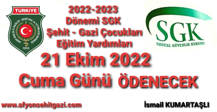 2022-2023 EĞİTİM ÖĞRETİM DÖNEMİ ŞEHİT ÇOCUKLARI / GAZİ ÇOCUKLARI EĞİTİM YARDIMLARI 21 EKİM 2022 TARİHİNDE ÖDENECEKTİR.