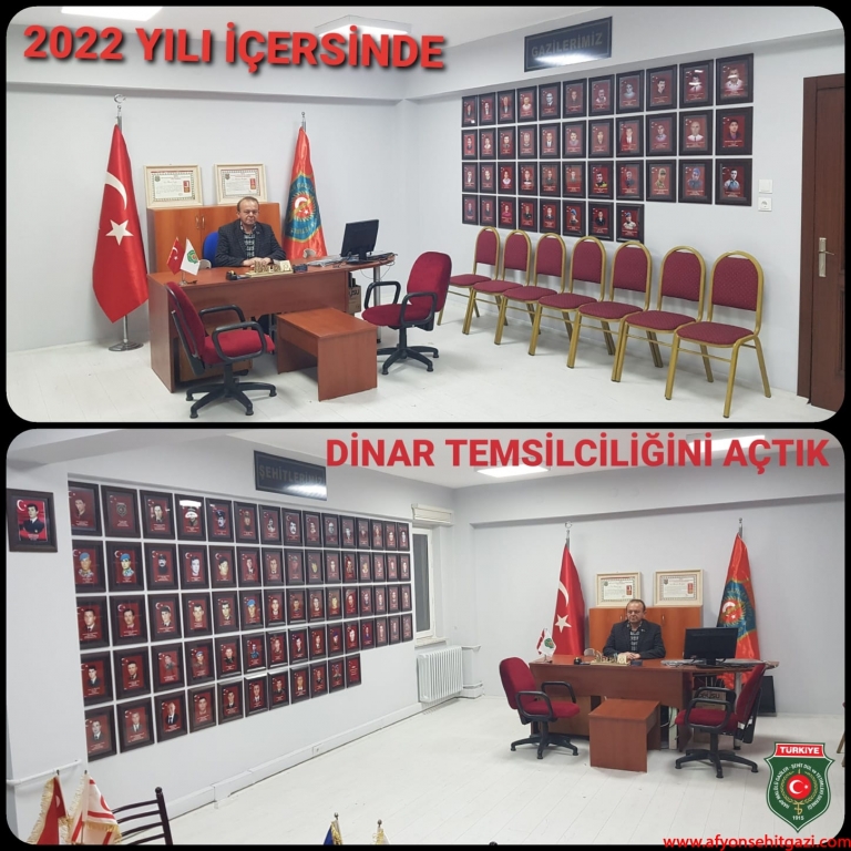 Derneğimiz üyesi Şehit Ailelerimiz ve Gazilerimize daha iyi hizmet verebilmek için Derneğimiz Türkiye Harp Malulü Gaziler Şehit Dul ve Yetimleri Derneği Dinar Temsilciliğini Dİnar Belediye Başkanlığı içersinde yeni hizmet binasında açtık.