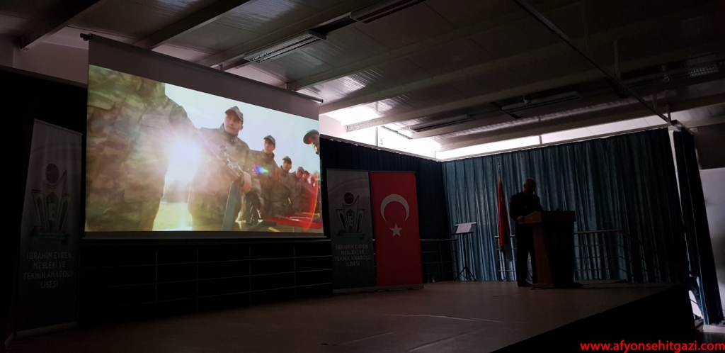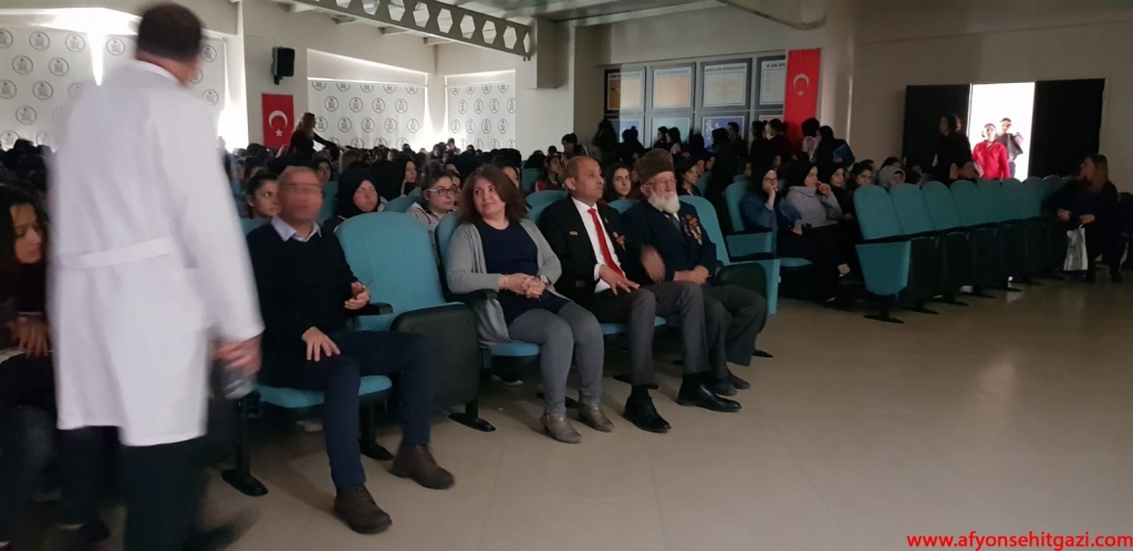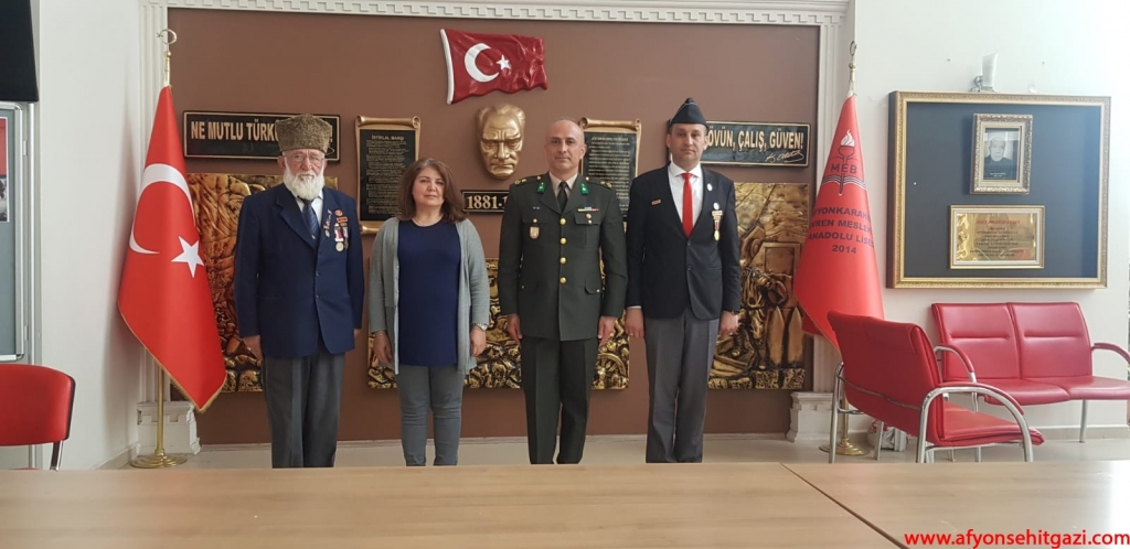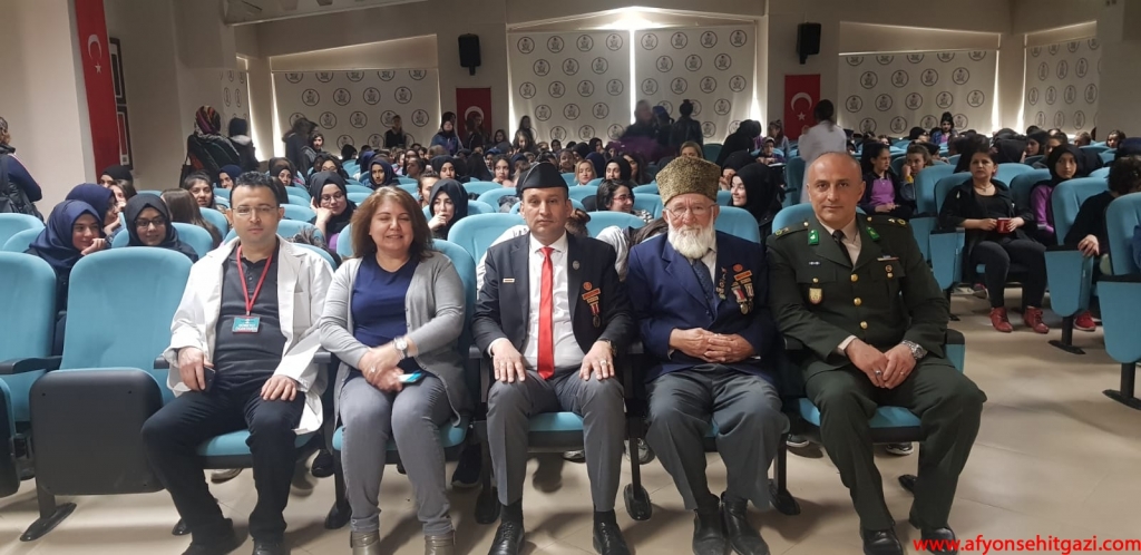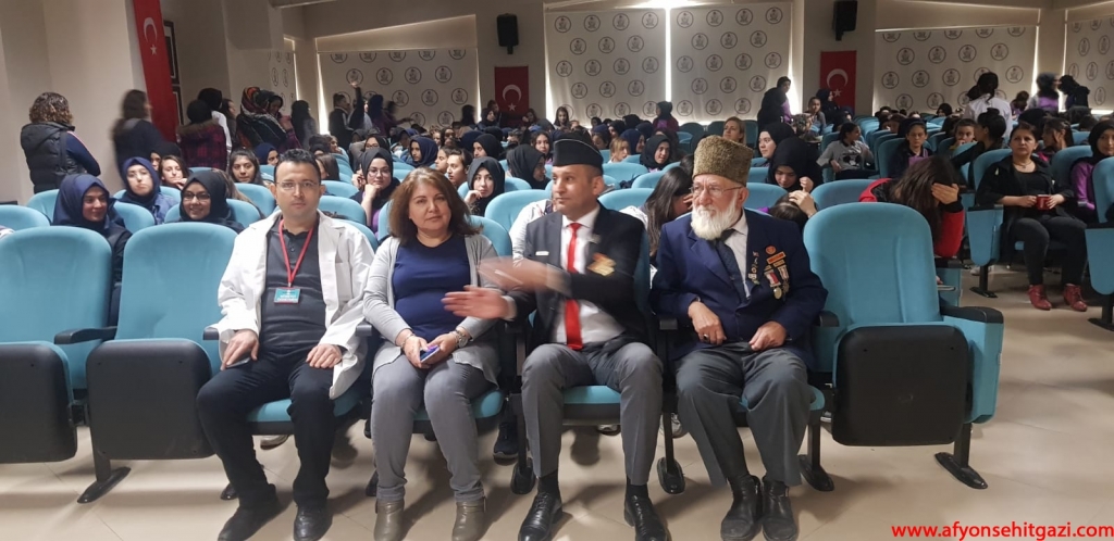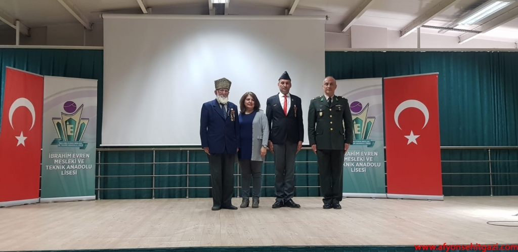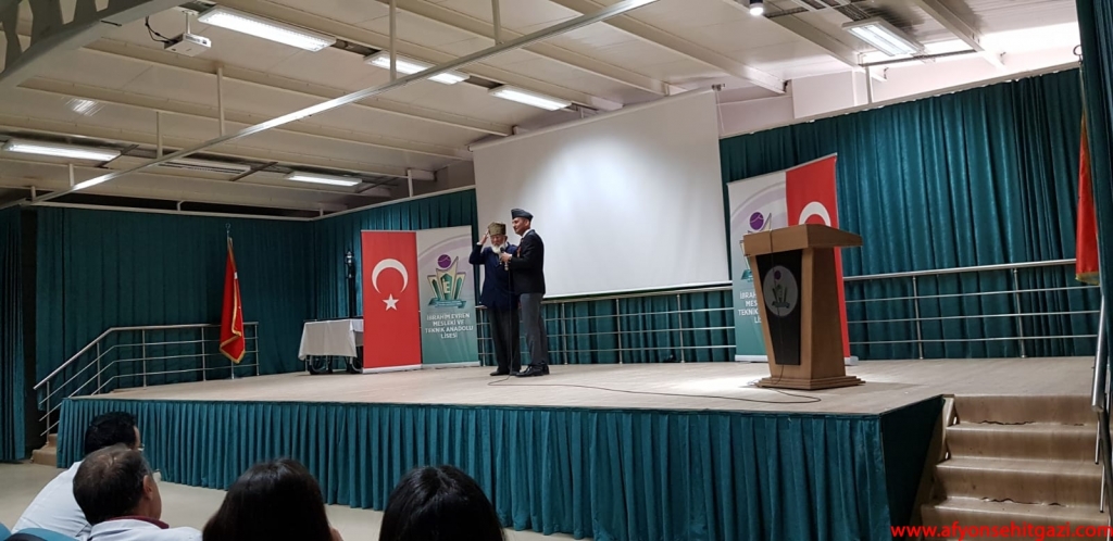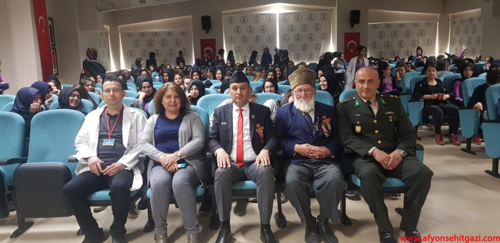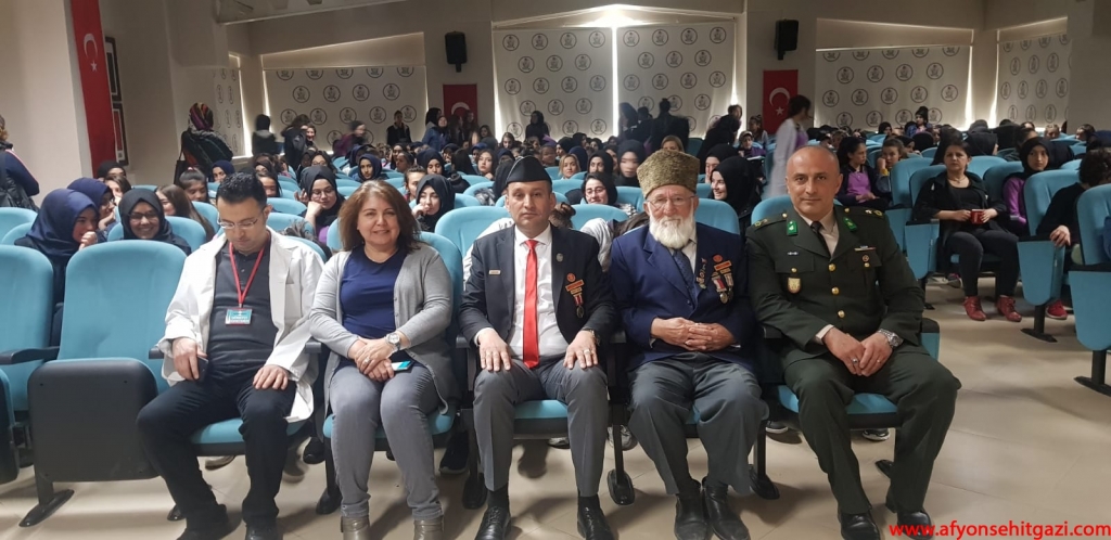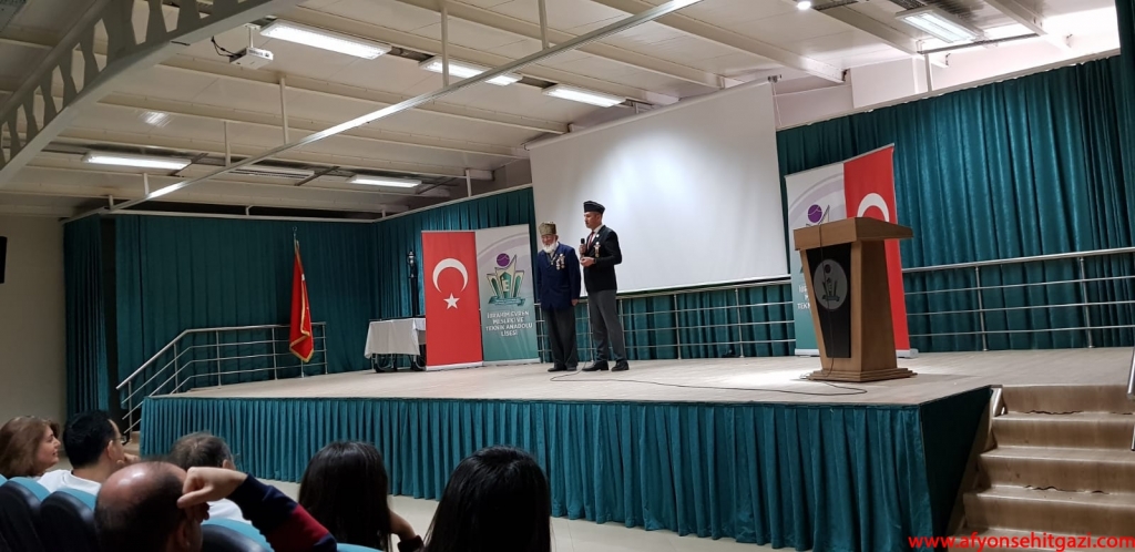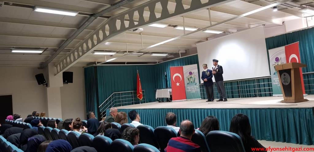 Türkiye Harp Malulü Gaziler Şehit Dul ve Yetimleri Derneği Afyonkarahisar Şube Başkanı Malül Gazi P. Uzm. Çvş. İsmail Kumartaşlı ise Şehitlik ve Gazilik olgusu üzerine paylaşımlarda bulundu aynı zamanda Çanakkale’den Kocatepe’ye, Sarıkamış’tan Kıbrıs’a tarihin farklı dönemlerindeki şehitlerimiz anıldı. Söyleşinin her saniyesini dikkatle ve saygıyla izleyen öğrenciler Gazilerimiz tarafından övgüyle karşılandı.