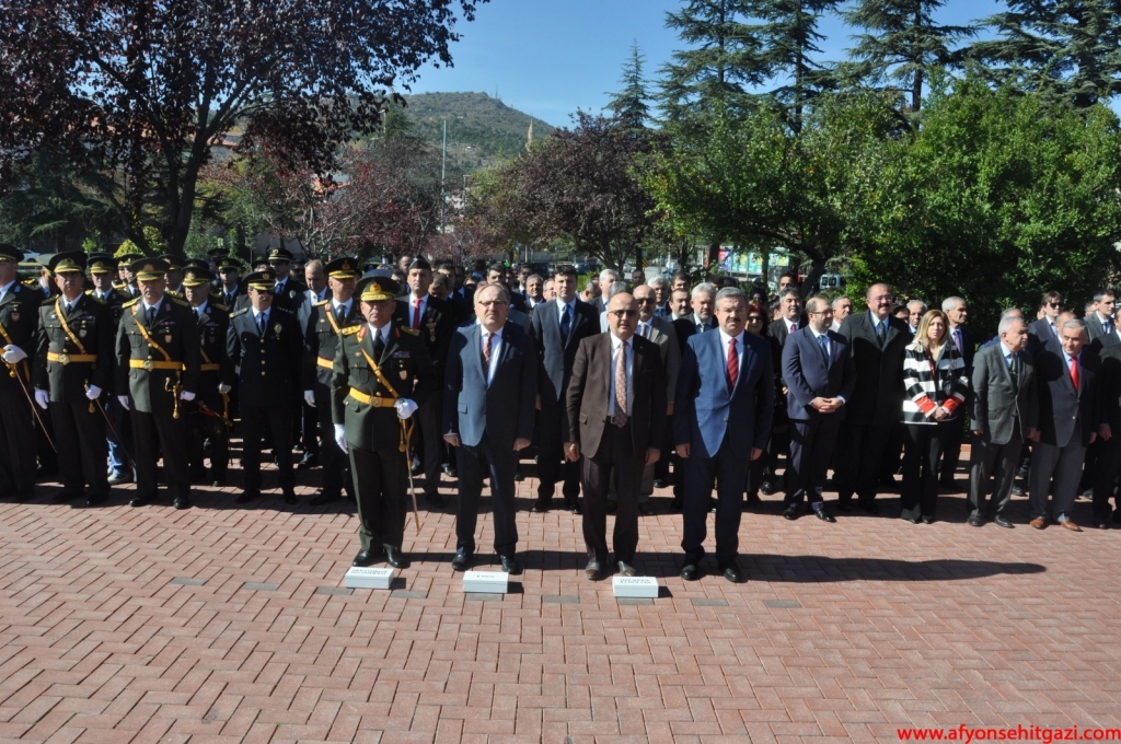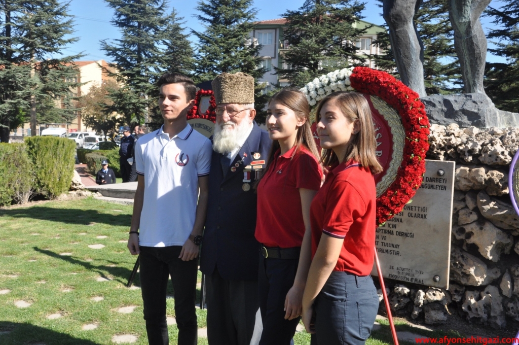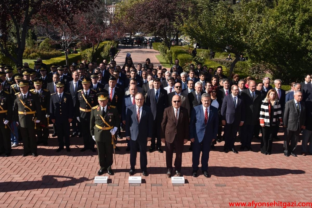 Çelenk sunma törenine Vali Mustafa Tutulmaz'ın yanı sıra Milletvekili İbrahim Yurdunuseven, İkmal ve Garnizon Komutanı Tuğg. Özdemir Şan, Belediye Başkanı Burhanettin Çoban, Türkiye Harp Malulü Gaziler Şehit Dul ve Yetimleri Derneği Afyonkarahisar Şube Başkanı İsmail Kumartaşlı,Askeri Erkan, kamu kurum ve kuruluşların müdürleri, sivil toplum örgütü temsilcileri, Şehit yakınları ve Gaziler, öğretmenler ve öğrenciler ile vatandaşlar katıldı.