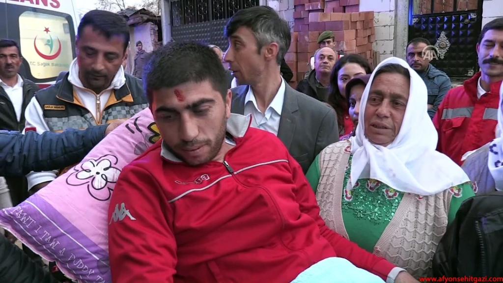 Afyonkarahisar'ın Çay ilçesine bağlı Karacaören beldesindeki evine getirilen gazi Ünal, annesi Şenel ve ağabeyi Ali Osman Ünal tarafından mutluluk gözyaşlarıyla karşılandı.