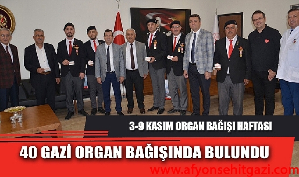 Türkiye Harp Malulü Gaziler, Şehit Dul ve Yetimleri Derneği Afyonkarahisar Şubesi üyeleri 40 Gazi, 3-9 Kasım Organ bağış haftası nedeniyle düzenlenen etkinlikte organlarını bağışladı.