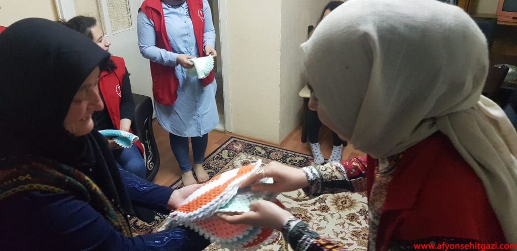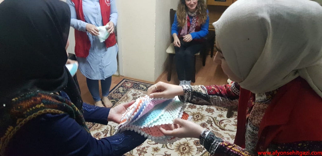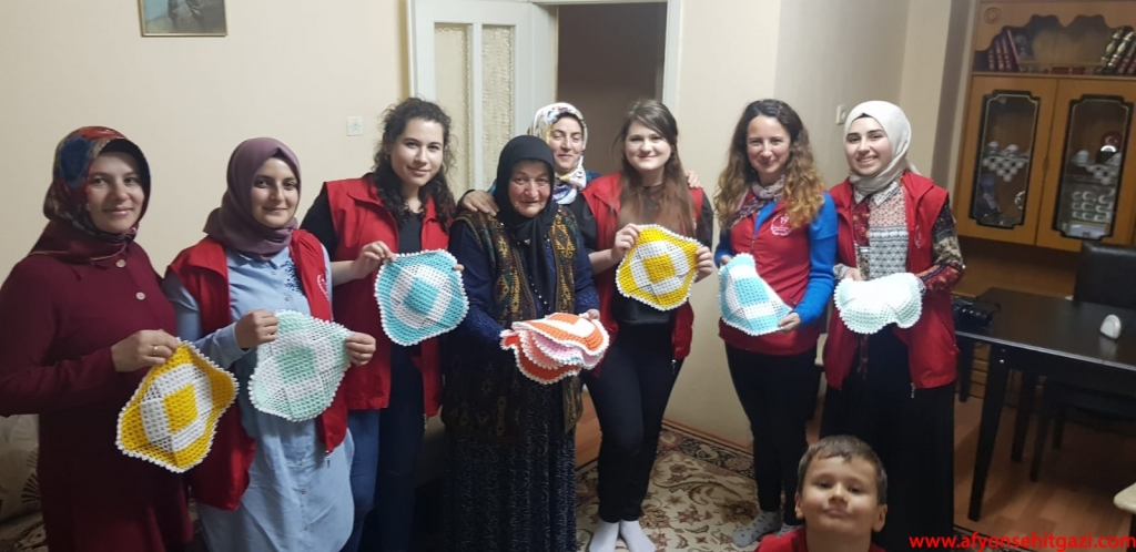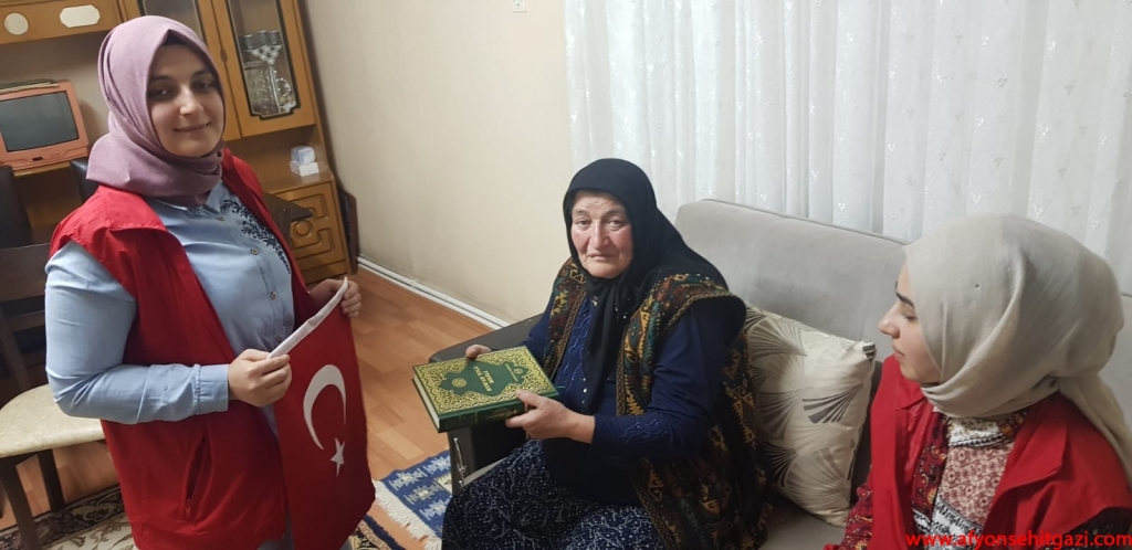 Ziyaret esnasında Şehit annemiz Döne Çalış öğrencilere kendi elleri ile ördüğü lifleri hediye ederken öğrenciler annemize Kuran-ı Kerim ve Bayrağımızı hediye etti.