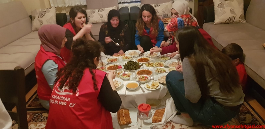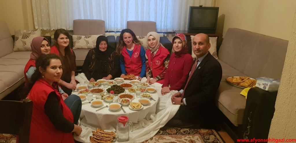 Afyonkarahisar Gençlik Merkezi Gençlik Lideri Aynur Suveren ve beraberindeki gönüllü öğrenciler,Türkiye Harp Malulü Gaziler Şehit Dul ve Yetimleri Derneği başkanı İsmail Kumartaşlı ile birlikte Şehit J.Er Metin Çalış’ın ailesini ziyaret ederek hazırladıkları yemekler ile iftar yemeği yedi.