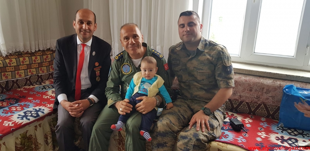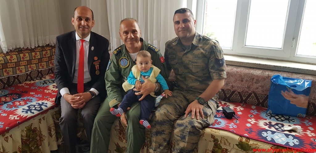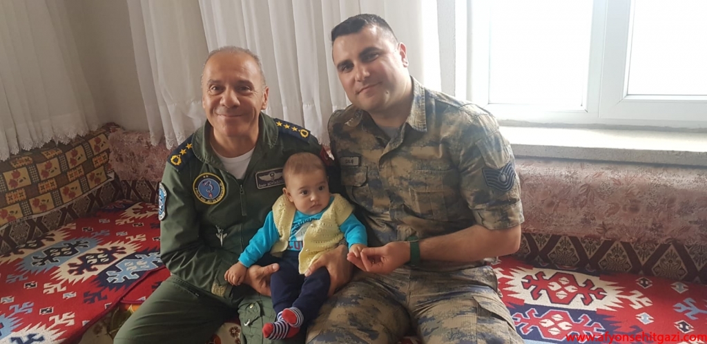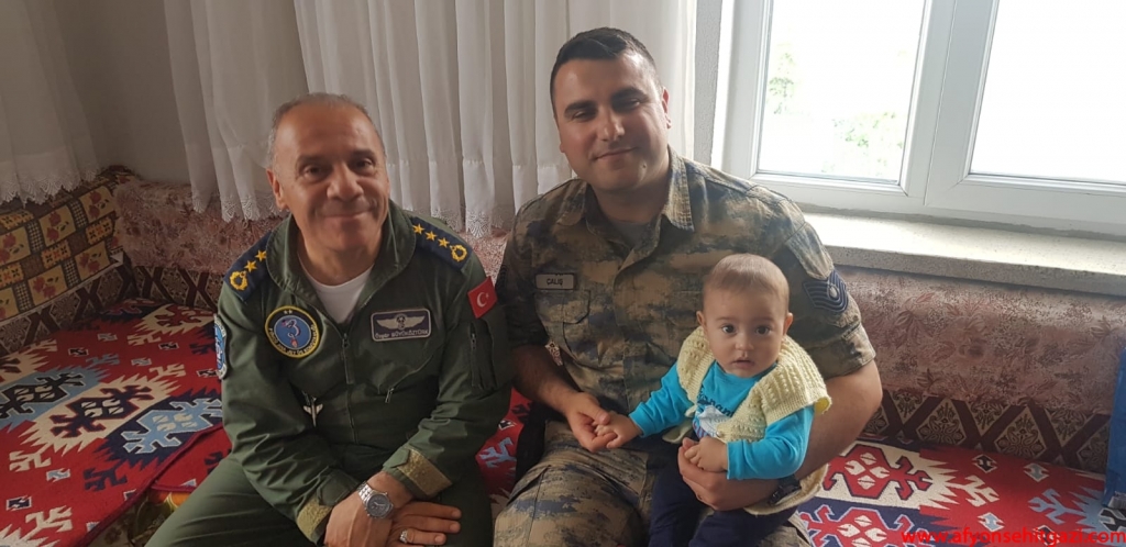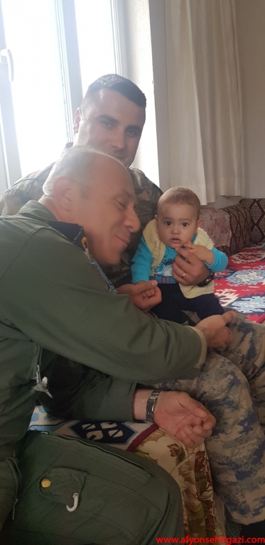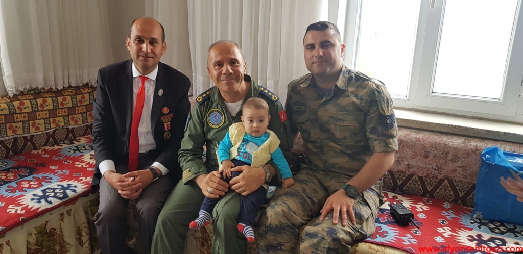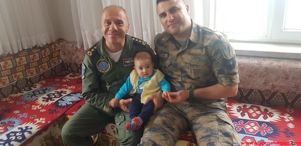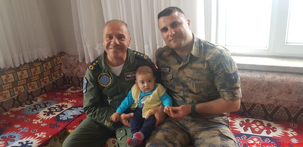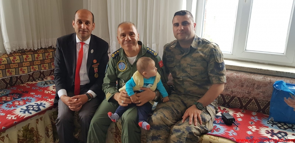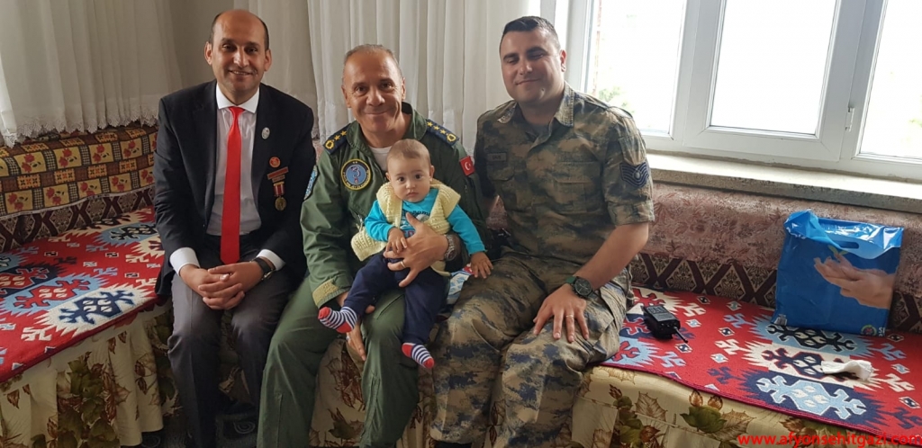 Afyonkarahisar Hava Meydan Komutanı Hv. SS. Alb. Özgür Büyüköztürk ve Başkan Kumartşlı şehidimizin 7 aylık oğlu Mert Efe ile yakından ilgilenerek “Şehitlerimizin Emeneti Baş Tacımızdır” diyerek ailemize tekrar baş sağlığı diledi.