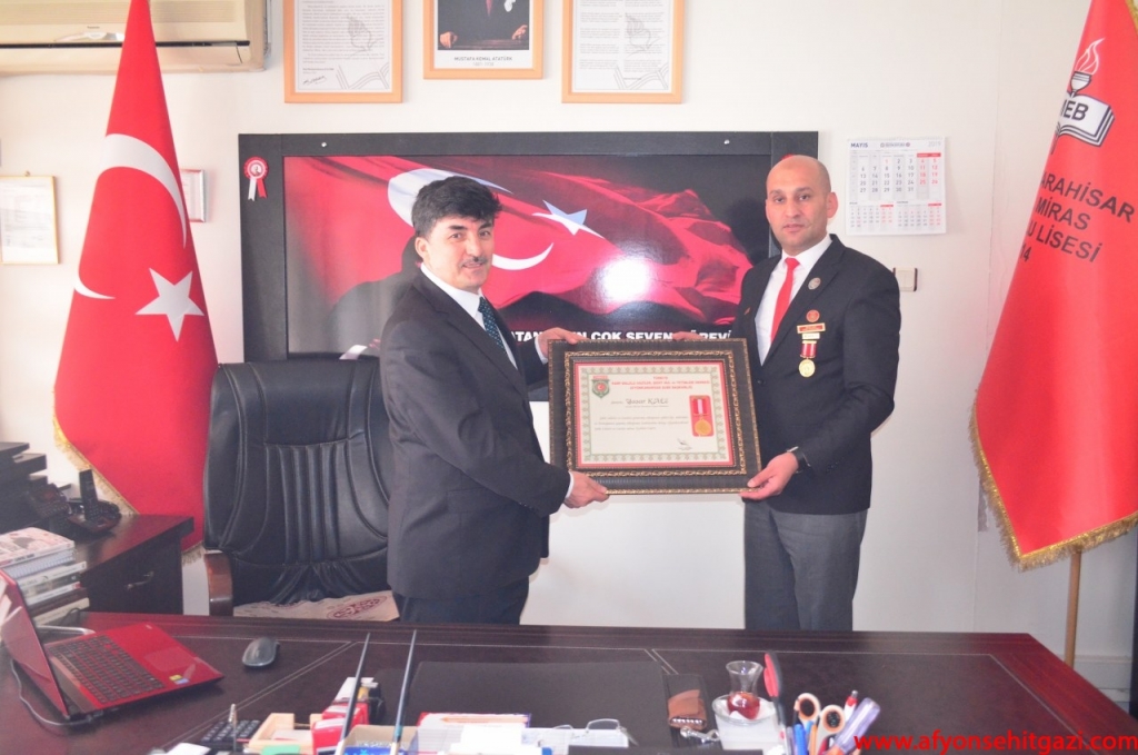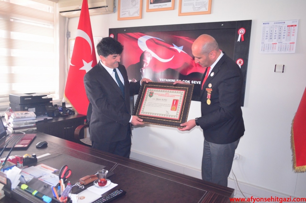 Türkiye Harp Malulü Gaziler, Şehit, Dul Ve Yetimleri Derneği Afyonkarahisar Şube Başkanı İsmail Kumartaşlı, Kıbrıs Gazisi Tahsin KOÇ, Şehit Babası Süleyman ÜYE, Şehit Babası Musa SAĞLAM, Gazi Emre ÖZTÜRK, Gazi Murat ÇETİNKAYA Kamil Miras Anadolu Lisesi Müdürü Yaşar KALE’ yi makamında ziyaret etti.