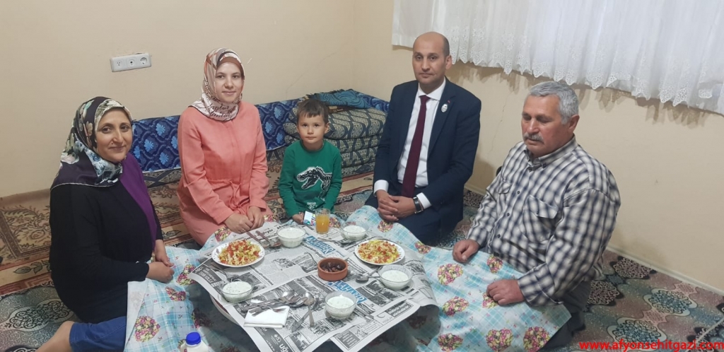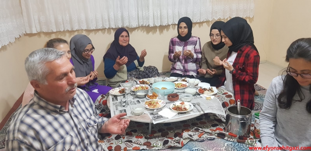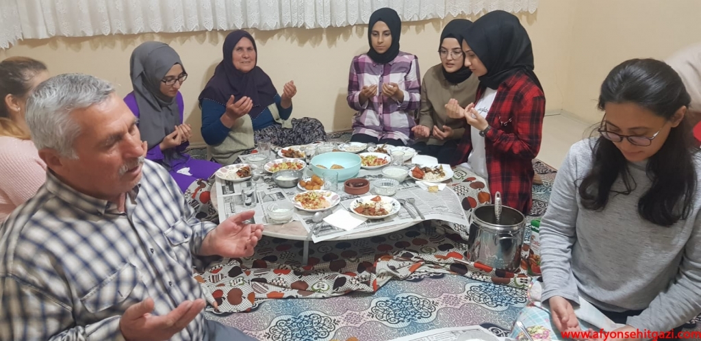 Afyonkarahisar KYK Destine Hatun Yurdu yöneticileri ve beraberindeki gönüllü öğrencileri,Türkiye Harp Malulü Gaziler Şehit Dul ve Yetimleri Derneği başkanı İsmail Kumartaşlı ile birlikte Şehit J.Er Mehmet Sağlam’ın ailesini ziyaret ederek hazırladıkları yemekler ile iftar yemeği yedi.