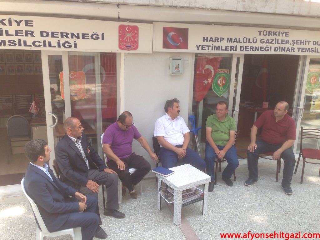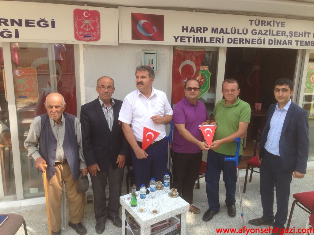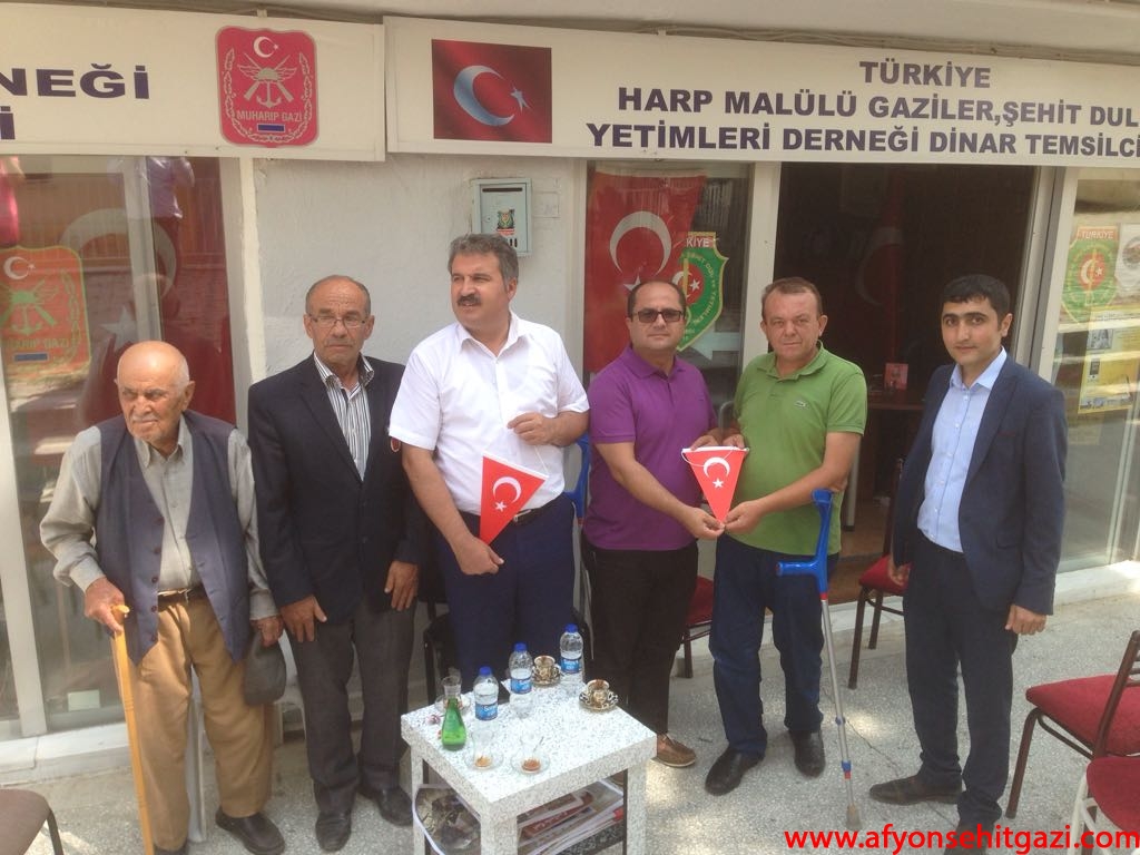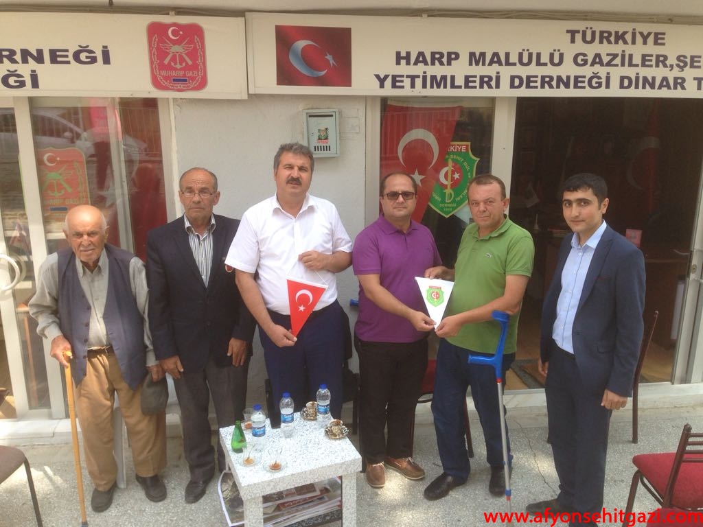 Aile ve Sosyal politikalar Afyonkarahisar İl Müdürü Alper Sezer ve Afyonkarahisar Sosyal Hizmetler Merkez Müdürü Aslan Yalçın Derneğimiz Türkiye Harp Malulü Gaziler Şehit Dul ve YetimleriDerneği Dinar Temsilciliğini ziyaret etti. Ziyaret esnasında Alper Sezer her zaman bu vatan milĺet uğruna canını feda eden Şehit ve Gazilerimizin her zaman yanlarındayız.Bu topraklarda rahat yasamanın bedelini onlara borçluyuz onlara hizmet vermekten onur ve gurur duyarım dedi.Ziyareten dolayı dernek temsilcisi Hasan Ceylan ve Muharip Gaziler Derneği Dinar Temilcisi Cengiz Kartal İl Müdürü Alper Sezere teşekür etti. Dinar Temsilcisi Hasan Ceylan Alper Sezer ve Arslan Yalcına Türkiye Harp Malulü Gaziler Şehit Dul ve Yetimleri Dernegi Logolu Türk Bayragı Hediye ederek ziyaret icin Teşekür Etti.