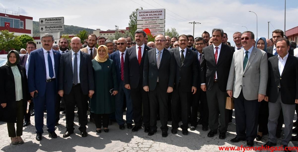 Afyonkarahisar Sağlık Bilimleri Üniversitesi Rektör Vekili Prof. Dr. Mustafa Solak’ın yeni kurulan üniversite hakkında detaylı bilgiler vermesinin ardından söz alan Orman ve Su İşleri Bakanı Prof. Dr. Veysel Eroğlu,” Öncelikle ilimizde kurulan ikinci üniversitemizin hayırlı olmasını gönülden temenni ederim. Eskiden sağlık sistemi nasıldı. Şu anda sağlıkta gerçekten Türkiye'de imrenilecek bir noktaya geldik. Sistemin oluşmasında emeği geçen bütün sağlık camiasına, İl Sağlık Müdürlüğü ile Sağlık Bakanımıza kadar herkese gönülden teşekkür ediyorum. Kocatepe Üniversitesi sağlık birimlerini planlı bir şekilde bir araya topladı. Hastaneler ile fakülteler bir arada bütün hizmetleri yerine getiriyorlar. Hastanelerimiz son derece ileri teknolojiler kullanarak tedavilere devam ediyor. Önceleri neredeyse sıra bulmak mümkün değildi. Nereden nereye geldik. Hakikaten şu anda Türkiye'nin en ileri teknoloji Fizik Tedavi ve Rehabilitasyon Hastanesi’ne sahibiz. Bizim tek eksiğimiz kanser hastalıkları teşhis ve tedavisi yani Onkoloji ve hematoloji kısımlarının olmaması idi. Sağ olsun Cumhurbaşkanımızın büyük destekleri ile burada muhteşem bir hastane kuruldu. Benim Amerika'da Kanada'da Avrupa'da gördüğüm hastaneler içinde en ileri teknolojiye sahip en mükemmel bir hastanededir. Sayın Cumhurbaşkanımızdan sonra ilimiz milletvekilleri çok büyük destek verdiler. İlimizde dünyanın en mükemmel Hastanesi, Fakülteleri ve Yüksekokulları ile bir Sağlık Bilimleri Üniversitesi kurulmasını istiyoruz dediğimizde Sayın Cumhurbaşkanımız razı oldu. Yeni hedeflerimizin olması lazım. Yeni bir takım ilaçların üretimi çok önemli. Bazı ilaçlarda dışarı bağımlıyız. Türkiye'de özellikle biliyorsunuz, hemen yakınımızda Tıbbi Aromatik Bitkiler Merkezimiz bulunmaktadır. Allah hayırlara vesile kılsın, bizde her türlü desteği vereceğiz. Ayrıca burada bir de bu kanser hastalarının refakatçileri için İstanbul'dan bir hemşerimiz buraya bir otel projesi hazırladı. Gerçekten muhteşem bir otel olacak. Yeni üniversitemizin ilimize ve ülkemize hayırlı olmasını temenni ediyorum.” dedi.